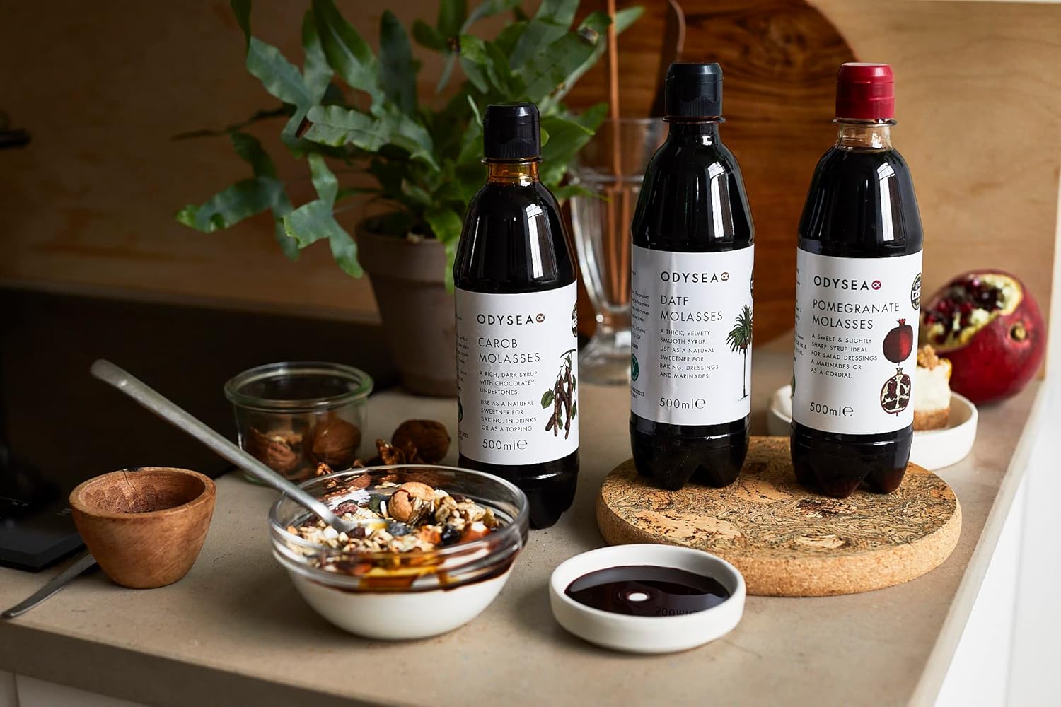 A thick, dense syrup with an intense, well-balanced sweet and sharp flavour. Made exclusively from reduced pomegranate juice, this pomegranate molasses is perfect for enhancing both savoury and sweet dishes. Ideal for whisking into marinades or salad dressings, brushing over meat or poultry as a glaze, drizzling over roast vegetables, fruit, or yoghurt, and even using as a cordial base for cocktails.
