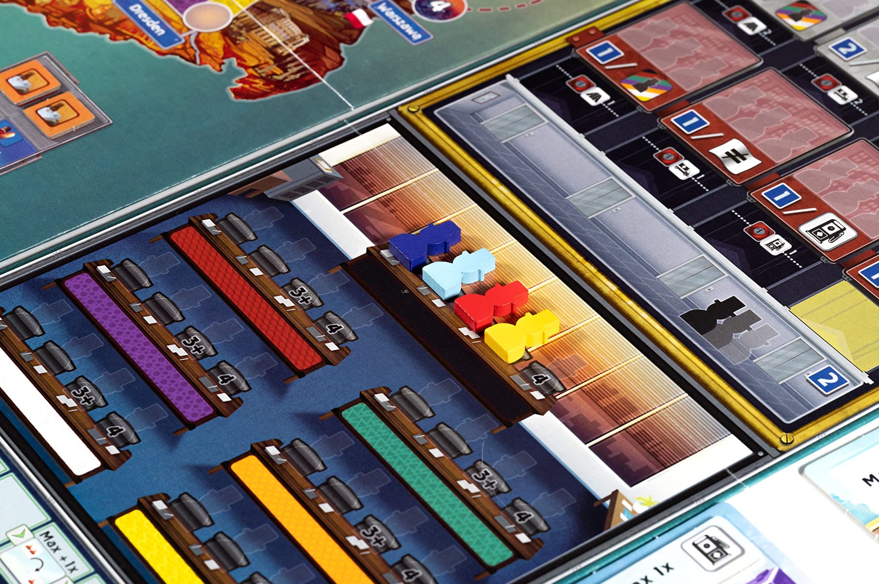 • Players take turns using hand of cards to build Autobahns across 7 main routes, optimizing timing and efficiency