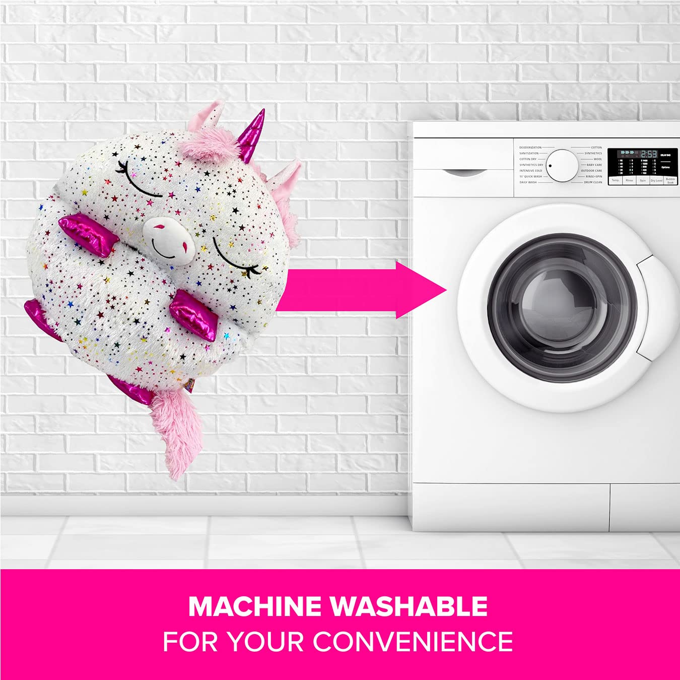 - 2-in-1 design transforms from a plush unicorn toy into a full-size sleeping bag in seconds