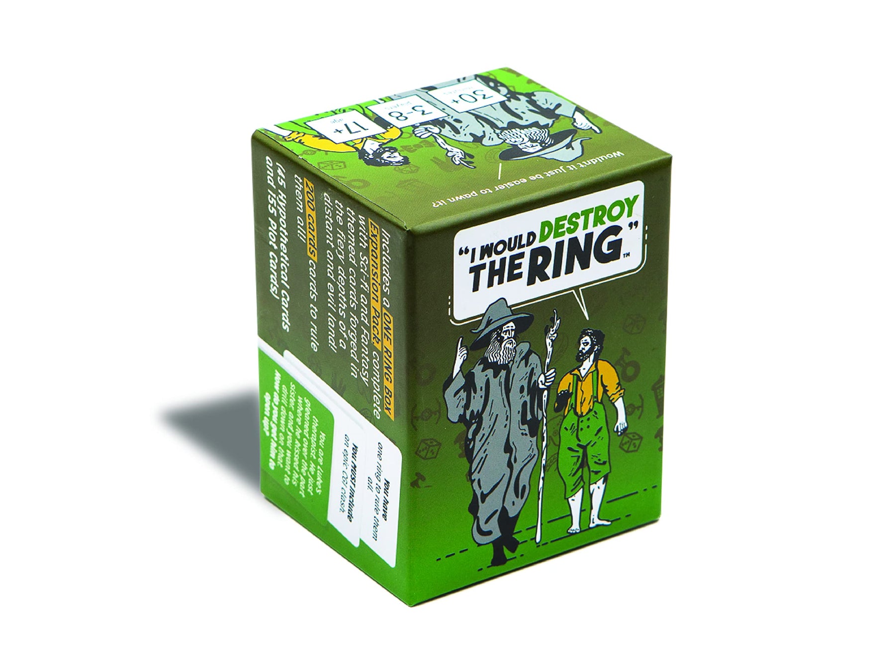 This standalone expansion pack for 'I Would Kill Hitler' dives into the wildest hypotheticals from sci-fi and fantasy nerd culture, featuring cards forged in the fiery depths of Mordor. In 'I Would Destroy the Ring,' players craft creative stories using plot cards to answer wild hypothetical scenarios, competing for the title of funniest, most realistic, or most random response.