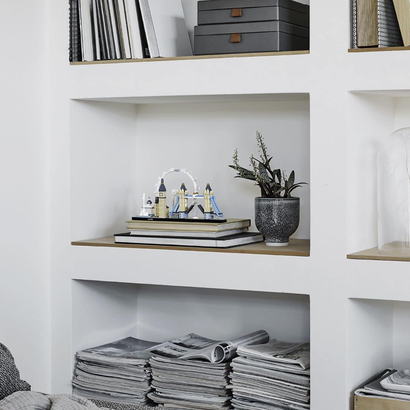 Build and display an iconic representation of London's architectural heritage with the LEGO Architecture Skyline Collection set. This detailed model captures the essence of one of the world’s most famous cities, featuring landmark structures including the National Gallery, Nelson’s Column, the London Eye, Big Ben (the Elizabeth Tower), and Tower Bridge. The Thames River is creatively represented using transparent baseplate tiles, adding an authentic touch to the display.