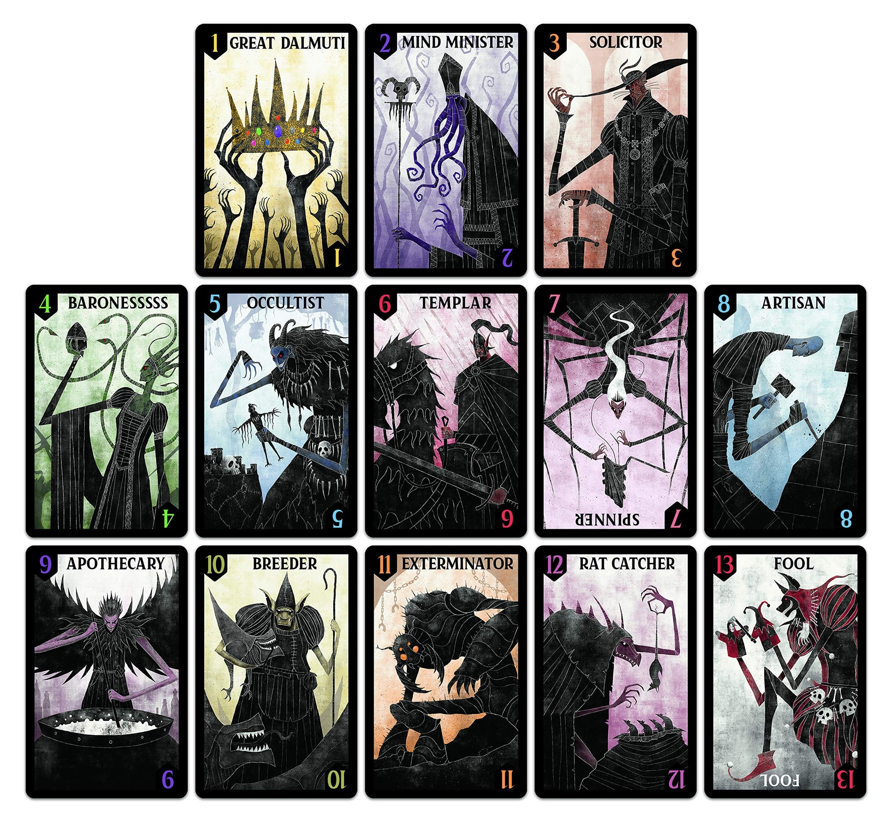 - Features D&D-themed card illustrations and reimagined characters including the Mind Minister, Templar, and Rat Catchers