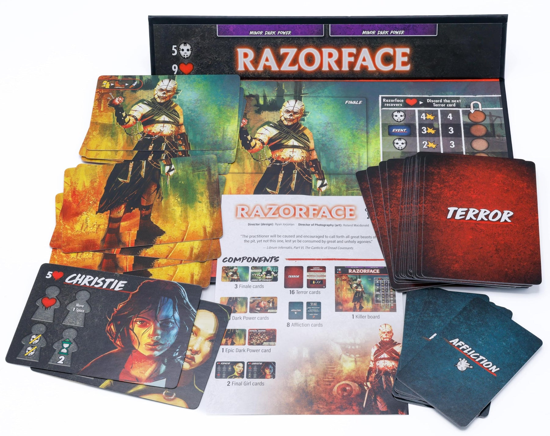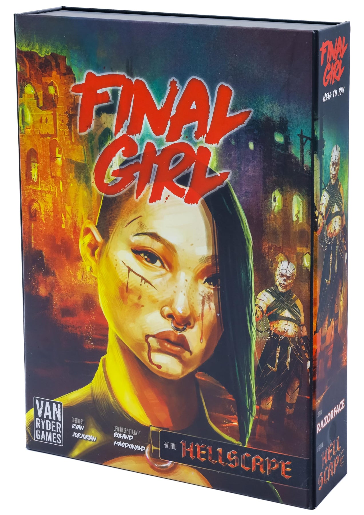 Step into the twisted world of Final Girl: Hell to Pay, a terrifying Feature Film box from Van Ryder Games. This solo board game experience challenges you to survive against the brutal killer Razorface in a Hellscape that shifts and morphs with each passing moment. Razorface draws power from your past mistakes and personal afflictions, forcing you to confront your deepest fears in the ever-changing Hellscape.