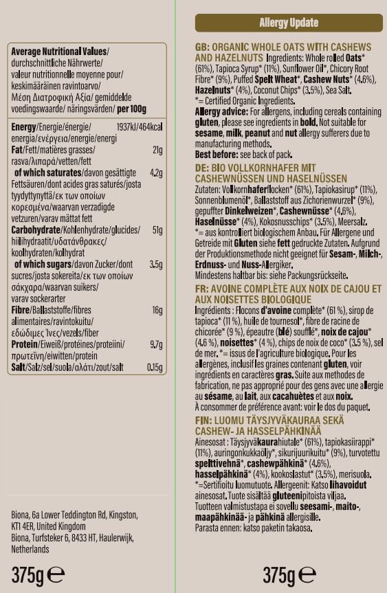 • Biona - Nuss-Cluster-Granola, zuckerarm, Bio