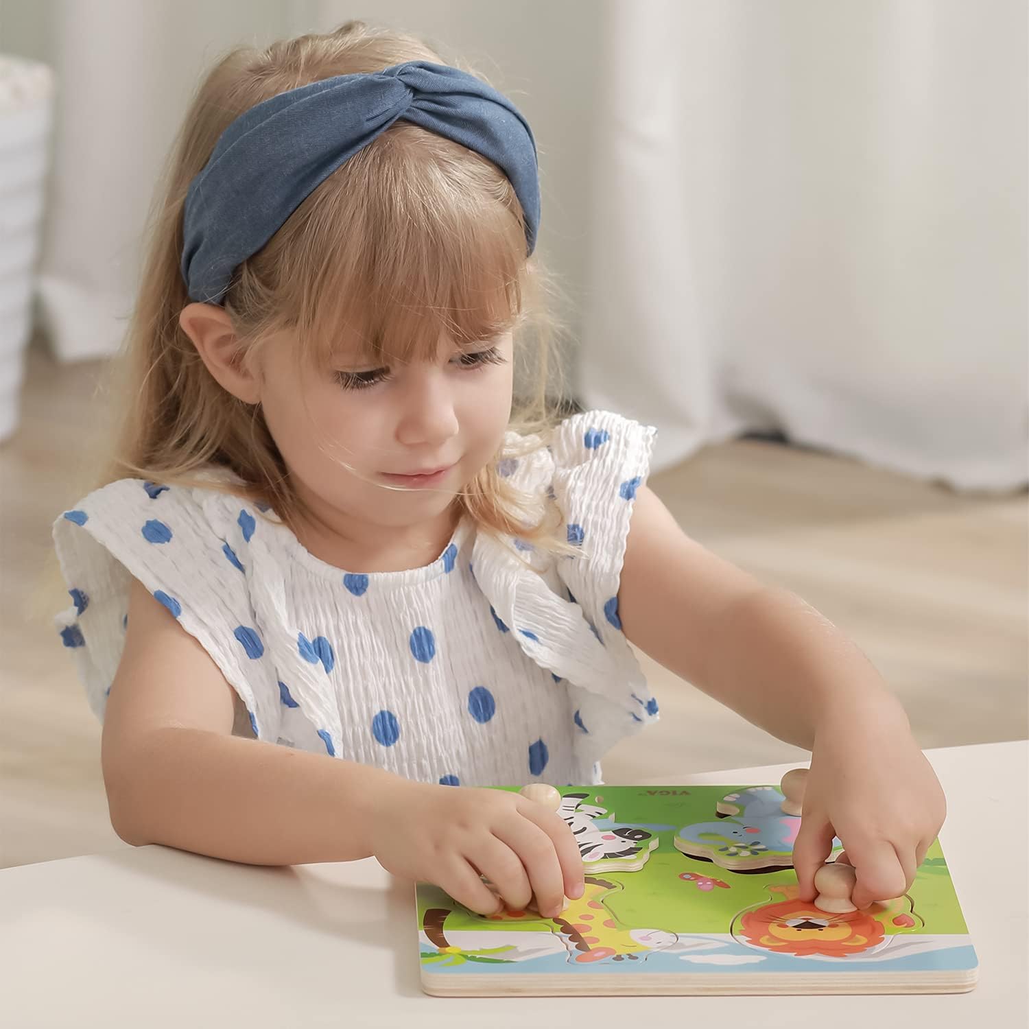 • Viga Toys Big Wooden Knob Puzzle - Wild Animals Educational Toy for Toddlers