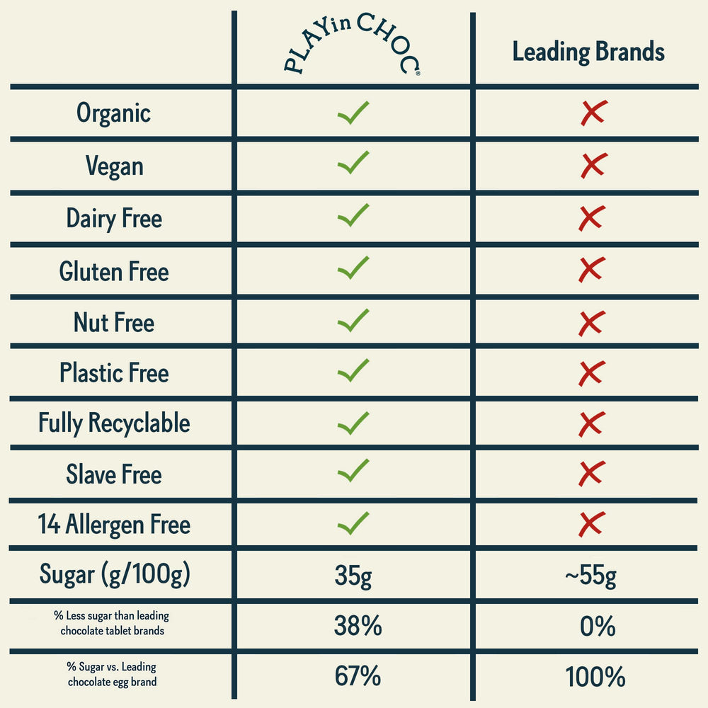 Each box contains individually wrapped, portion-controlled 10g mini-bars—perfect for lunch boxes, handbags, or on-the-go snacking. These allergy-friendly chocolates are dairy-free, nut-free, gluten-free, and plastic-free, making them a safe choice for sensitive eaters and families alike.