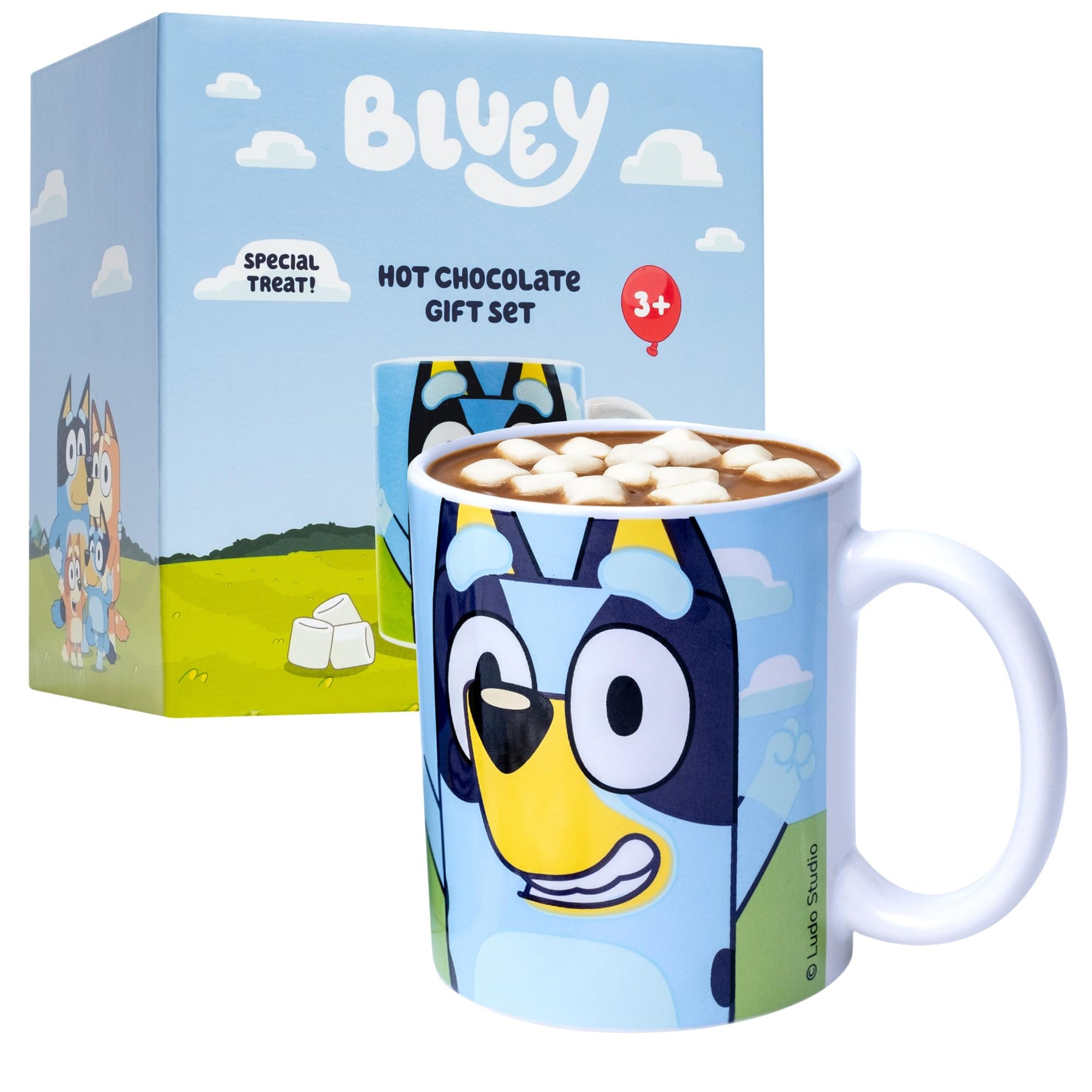 • Includes a ceramic Bluey-themed mug, hot chocolate mix, and mini marshmallows
