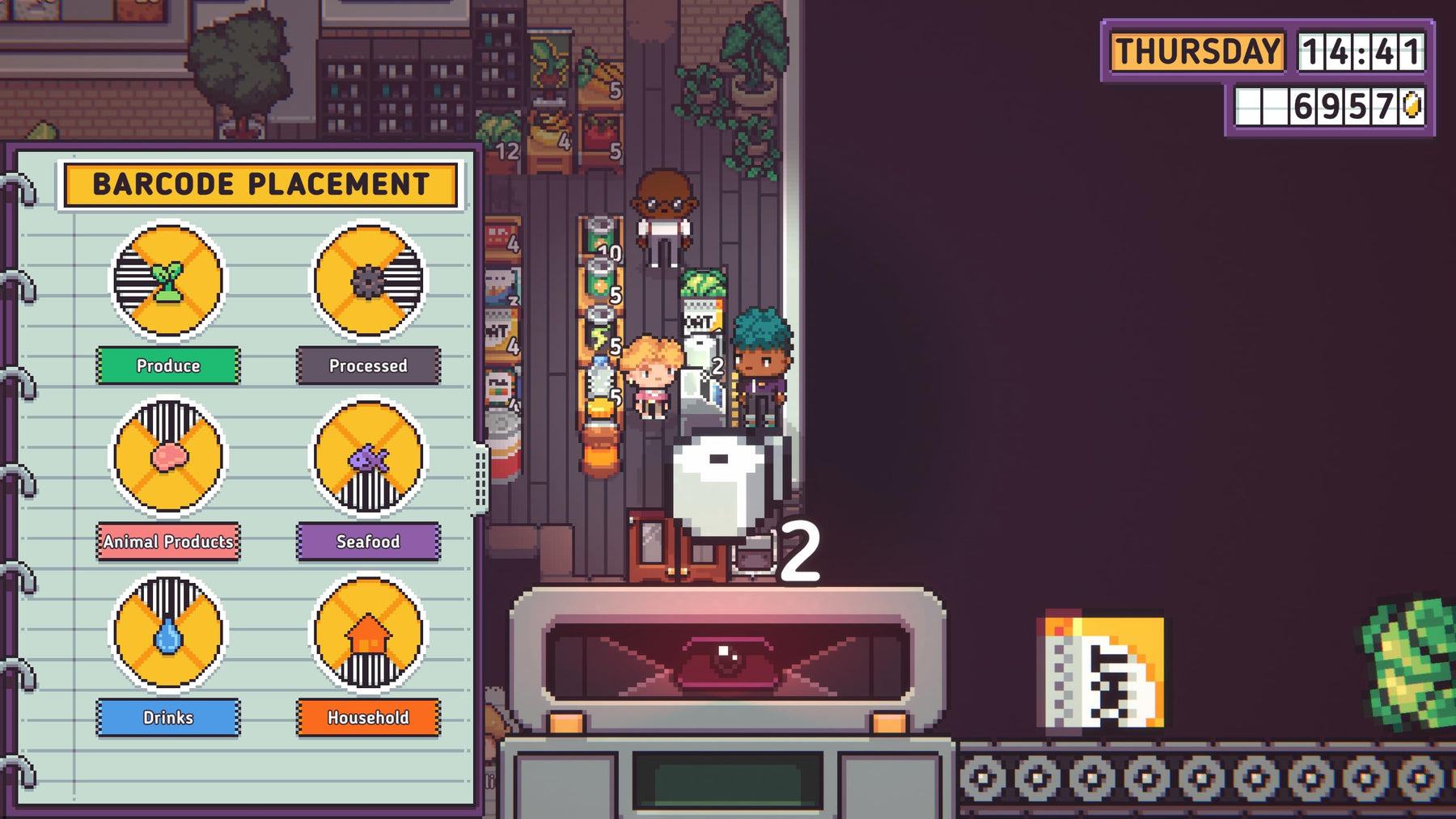 • Design and decorate your own supermarket with customizable shelves and decorations