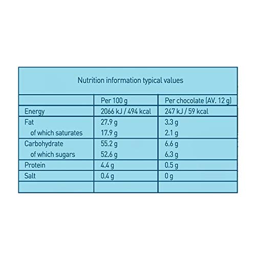 - Ingredients: Milk chocolate, dark chocolate, white chocolate, caramel, fondant, alcohol, natural flavourings