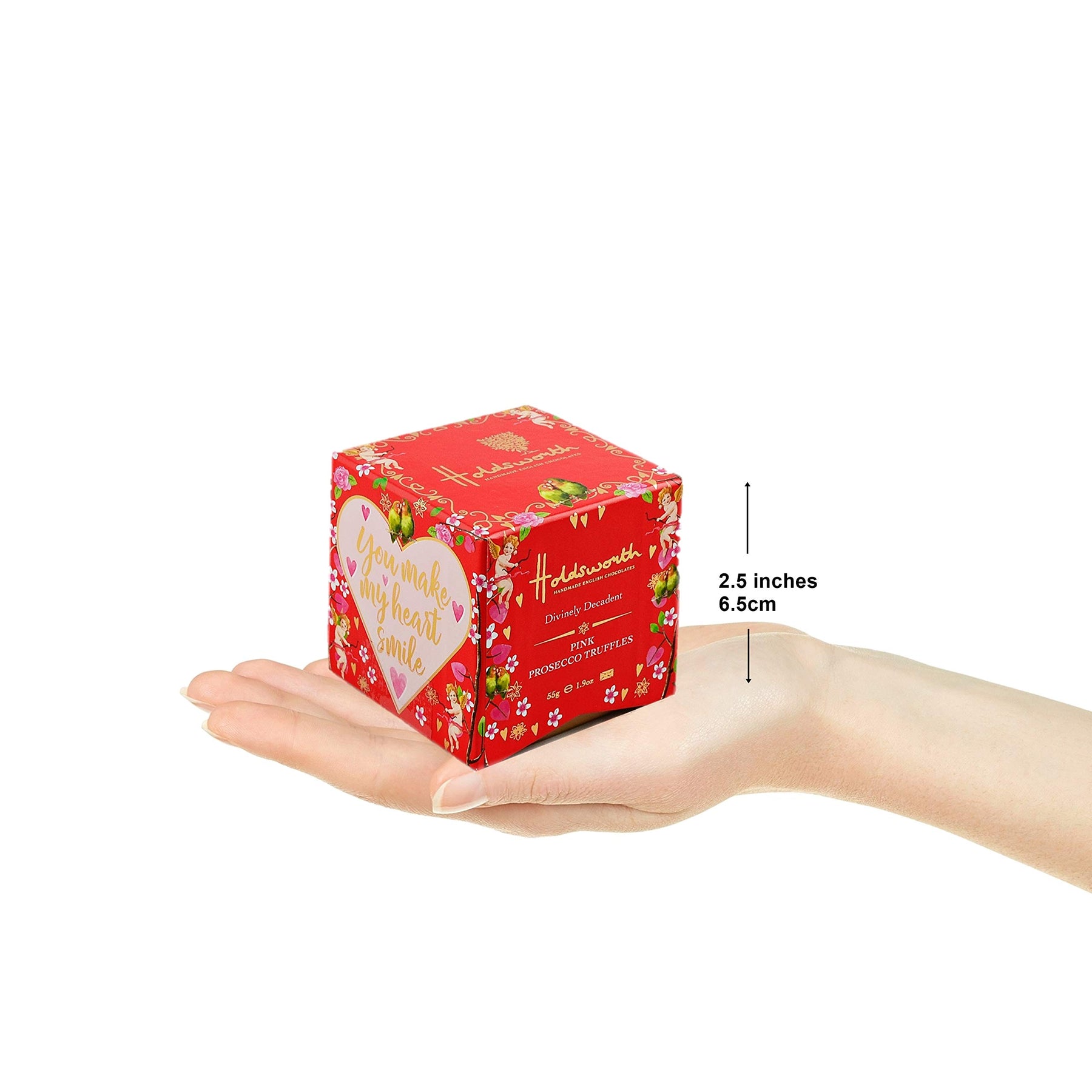 Indulge in the luxurious taste of Holdsworth Chocolates' Pink Prosecco Love Handmade Truffles, a decadent treat crafted with care in the heart of the Peak District. These creamy truffles are infused with real Prosecco (4%) and natural flavors, then elegantly coated in pink chocolate for a sophisticated twist on classic confectionery. Perfectly presented in a recyclable, intricately foiled keepsake gift box, this treat is ideal for sharing or savoring solo.