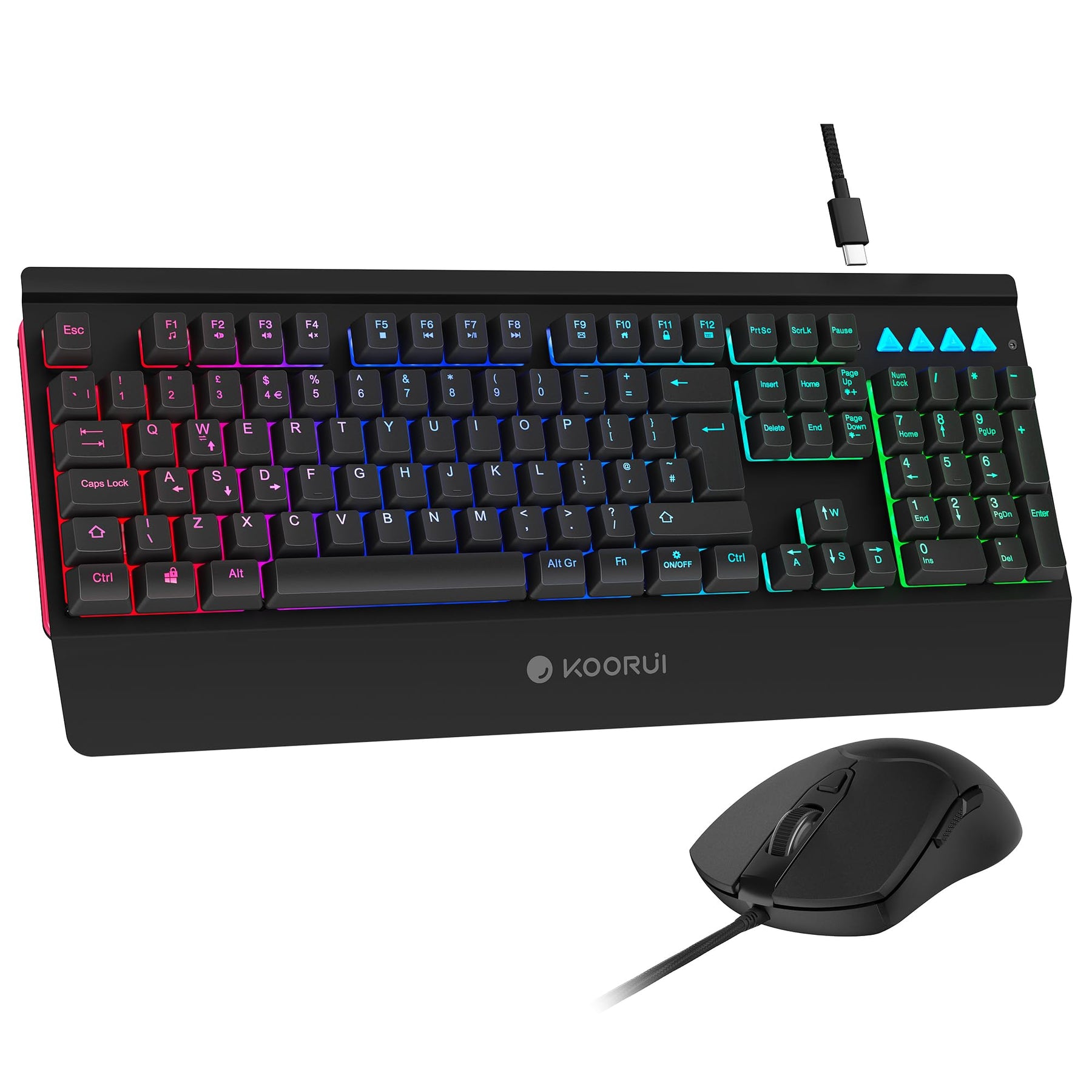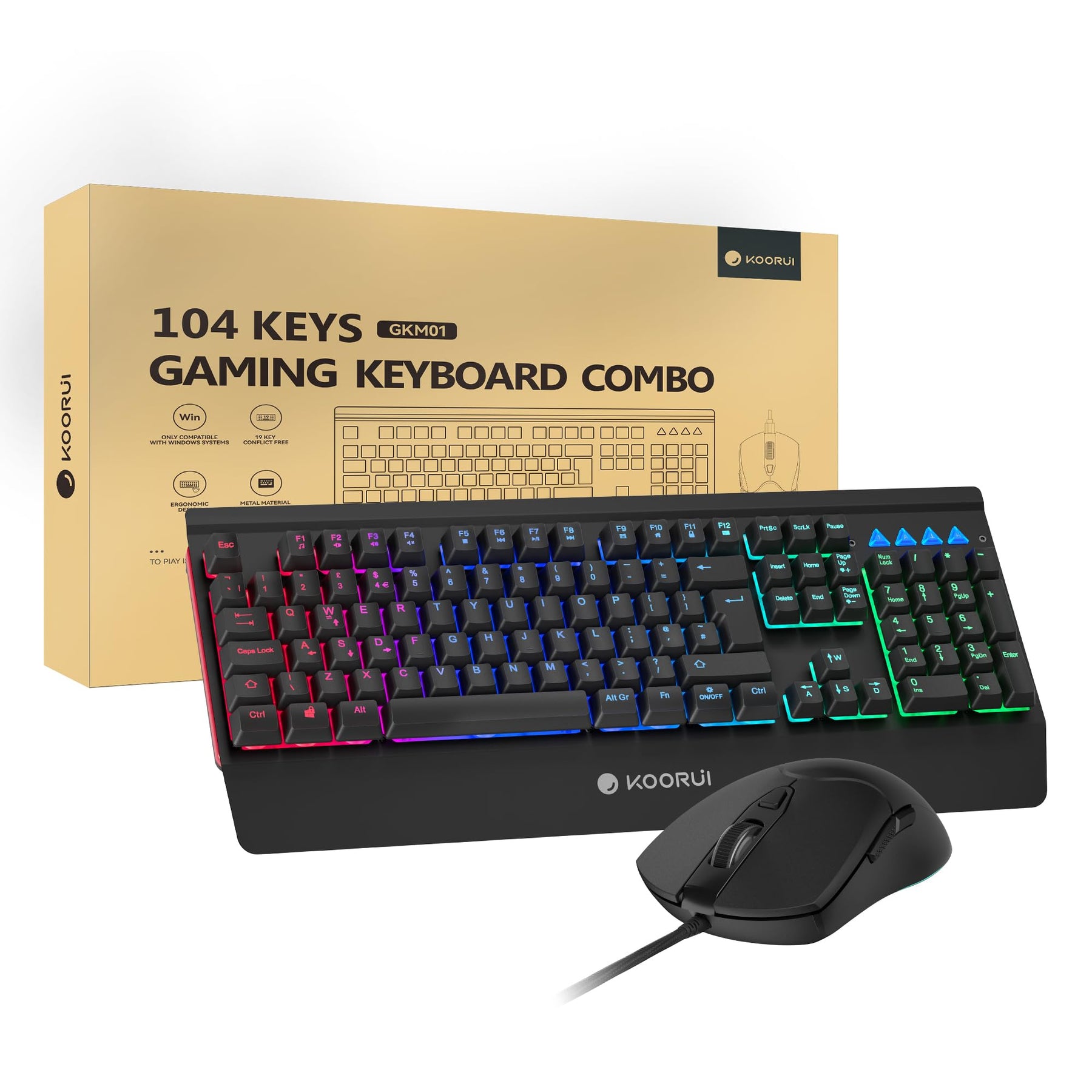Elevate your gaming and productivity setup with the KOORUI Gaming Keyboard Mouse Set, designed for reliable performance and comfort. This full-size keyboard features 104 keys with a tactile mechanical-like key feel, delivering a responsive and efficient typing experience without the premium price tag.