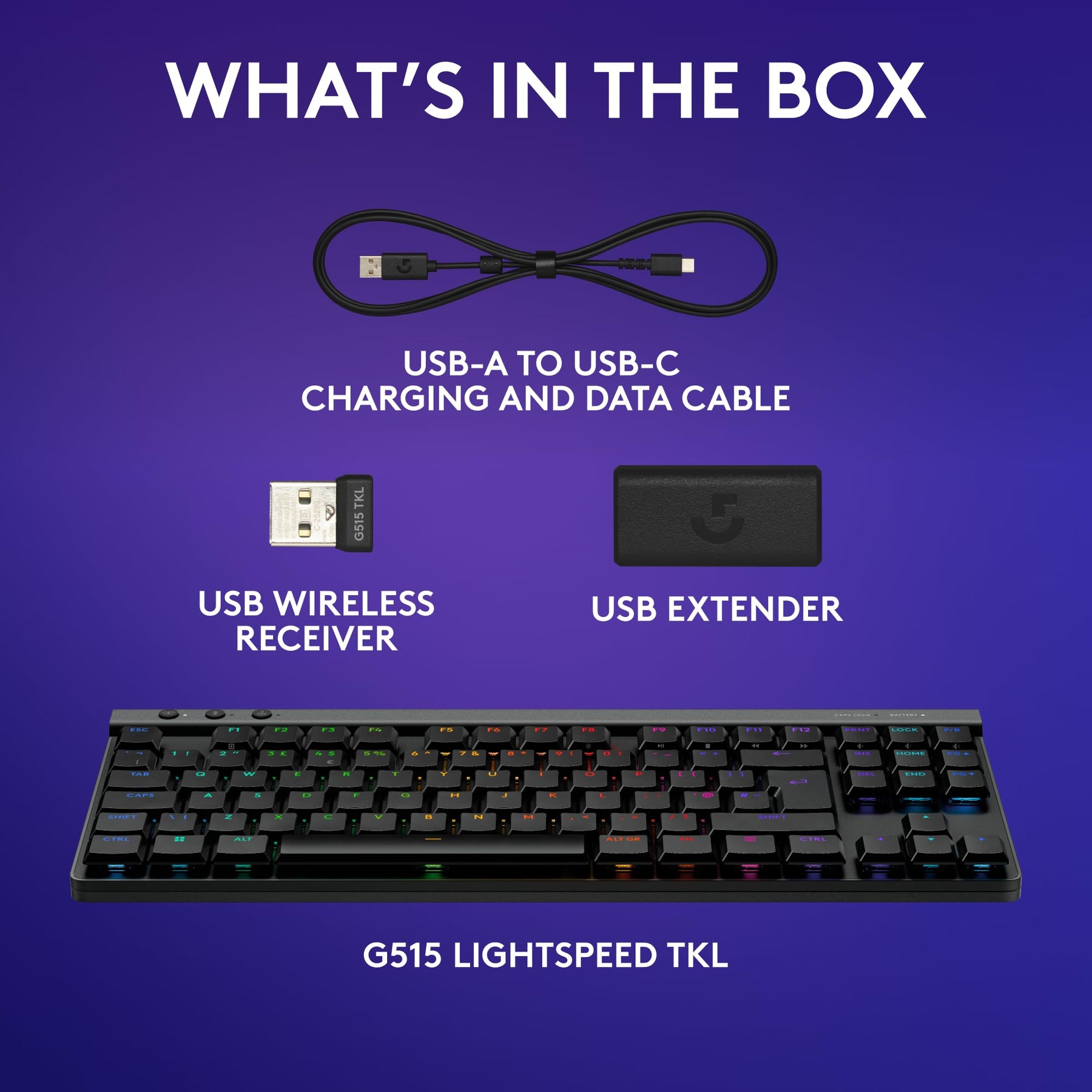 Logitech G G515 LIGHTSPEED TKL Wireless Gaming Keyboard with GL Brown Switches, Black