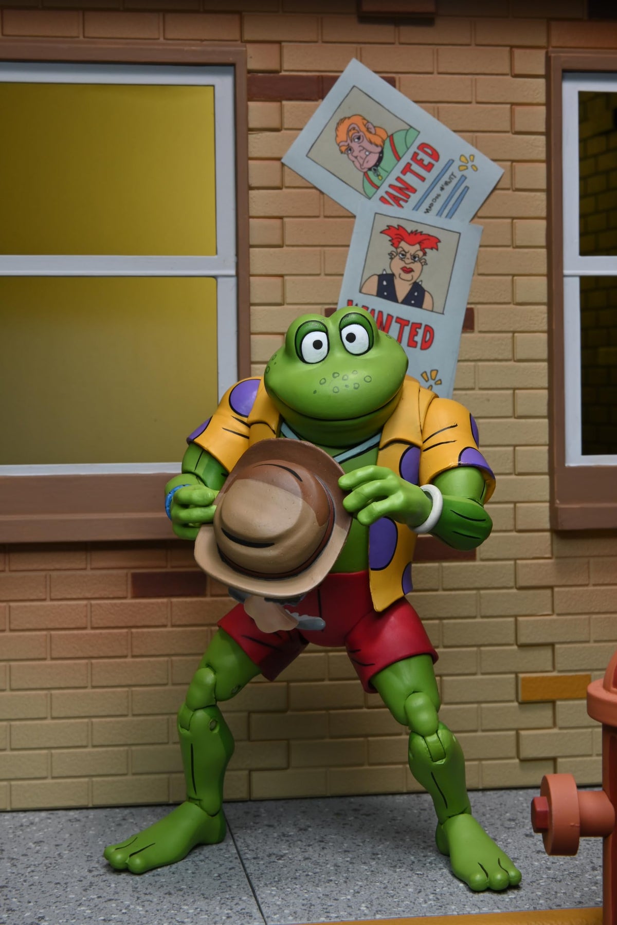 Relive the classic 1980s Teenage Mutant Ninja Turtles cartoon with this officially licensed NECA Punk Frogs 2-Pack featuring Genghis and Rasputin. Designed as Shredder's amphibian counterparts to the Turtles, these highly detailed 7-inch scale figures bring nostalgic action to your TMNT collection. Perfect for adult collectors, this set captures the quirky spirit of the original series with authentic design and play-inspired accessories.