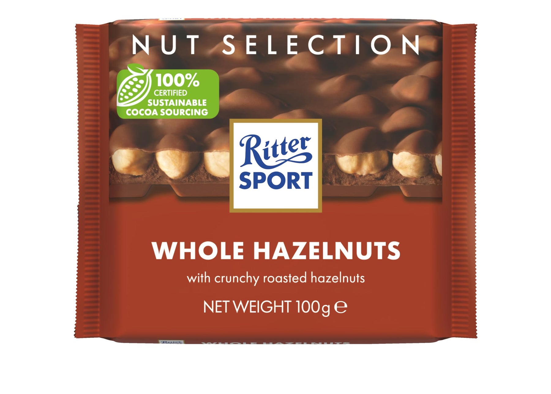 Discover the perfect balance of smooth milk chocolate and whole hazelnuts with Ritter Sport – a chocolate bar crafted with passion, quality, and care.