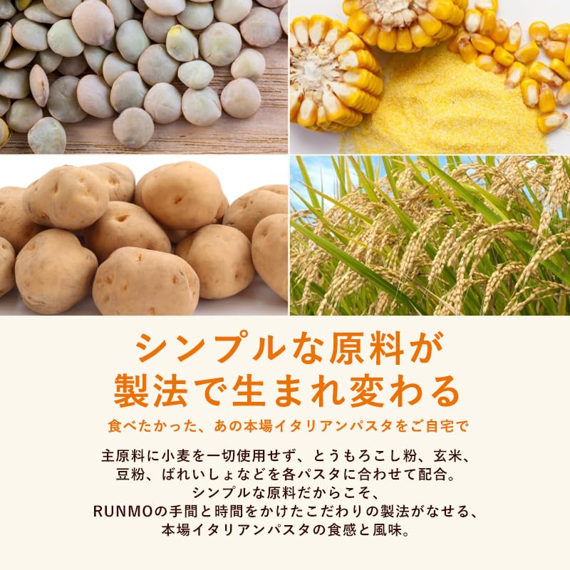 • Gluten-free pasta made from a blend of wholemeal rice, yellow corn, white corn, rice, and potato starch