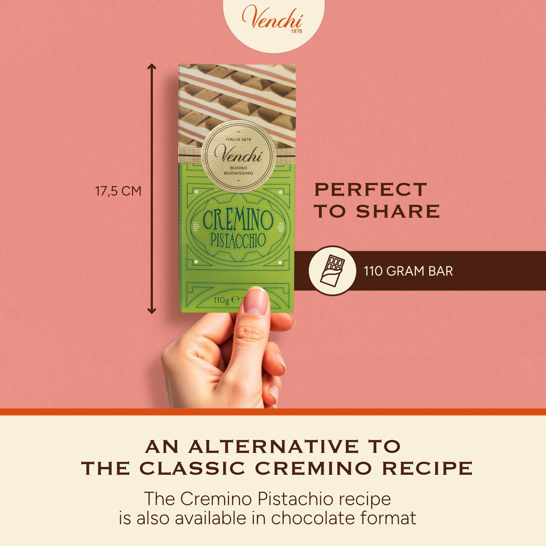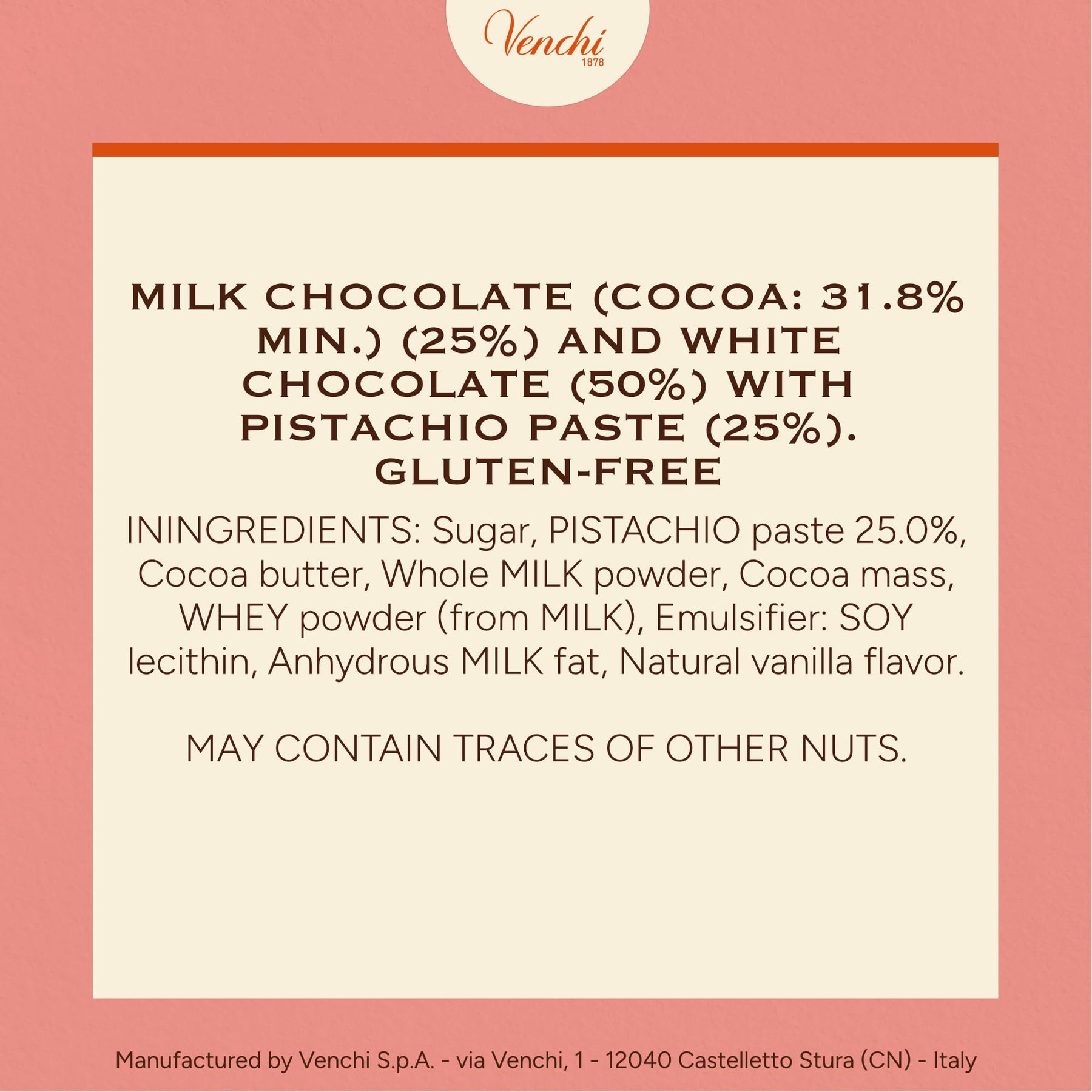 Experience the refined taste of Venchi’s artisanal chocolate-making tradition with every bite of this exquisite pistachio cremino bar.