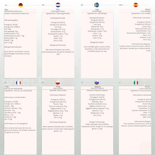 - 100% natural desiccated coconut meat