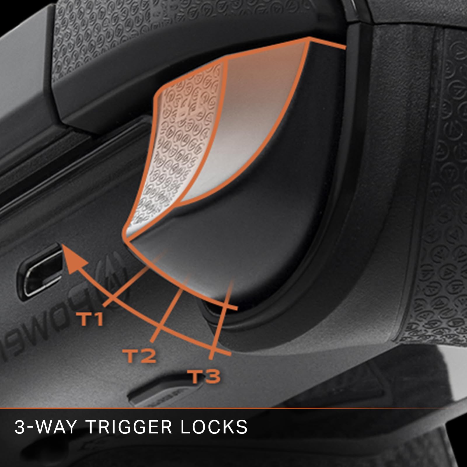 • 3-Way Trigger Locks – Customize trigger travel distance for faster response in FPS or full range for racing games