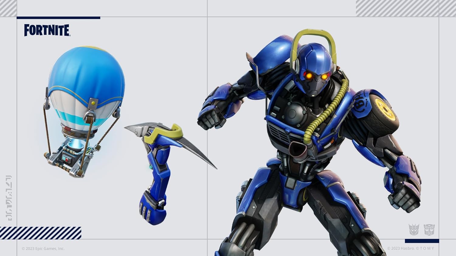 Unleash the power of Cybertron in Fortnite with the Transformers Pack! This digital content bundle brings iconic characters from the legendary franchise into the Fortnite universe, allowing you to transform your gameplay style with unique Outfits, Back Blings, Pickaxes, Emotes, and bonus V-Bucks.