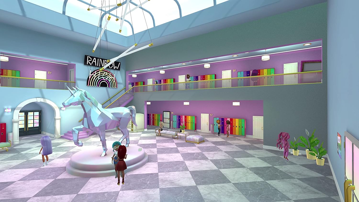 - Explore iconic locations across Rainbow High, from the Atrium and Residence Corridors to the Fabric Studio and Student Lounge
