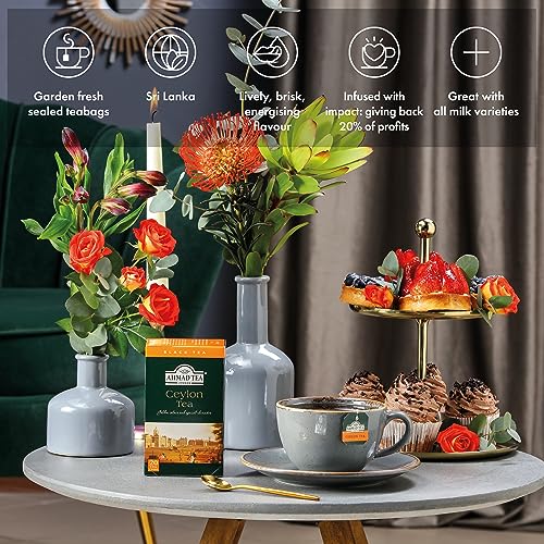 A classic black tea from Sri Lanka, Ahmad Tea's Ceylon blend delivers a fresh and citrusy cup with a beautifully brisk and lively flavour. Expertly blended from tea gardens at different altitudes for character and balance, this single-origin tea is a favourite among master tea tasters. For the best experience, add a slice of lemon to enhance its clean, invigorating profile.