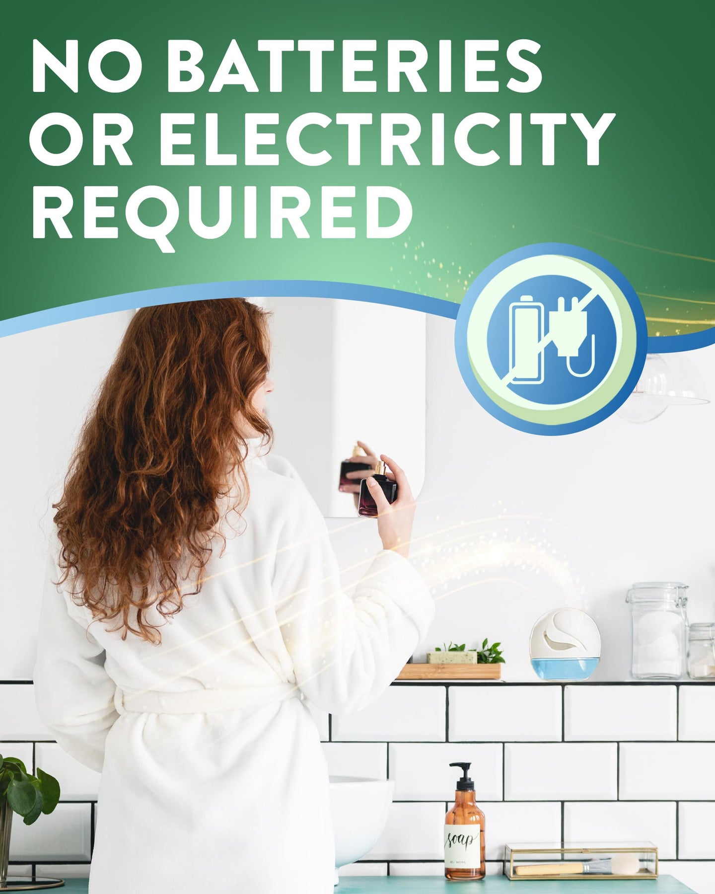 • Continuous fragrance release without refills or power
