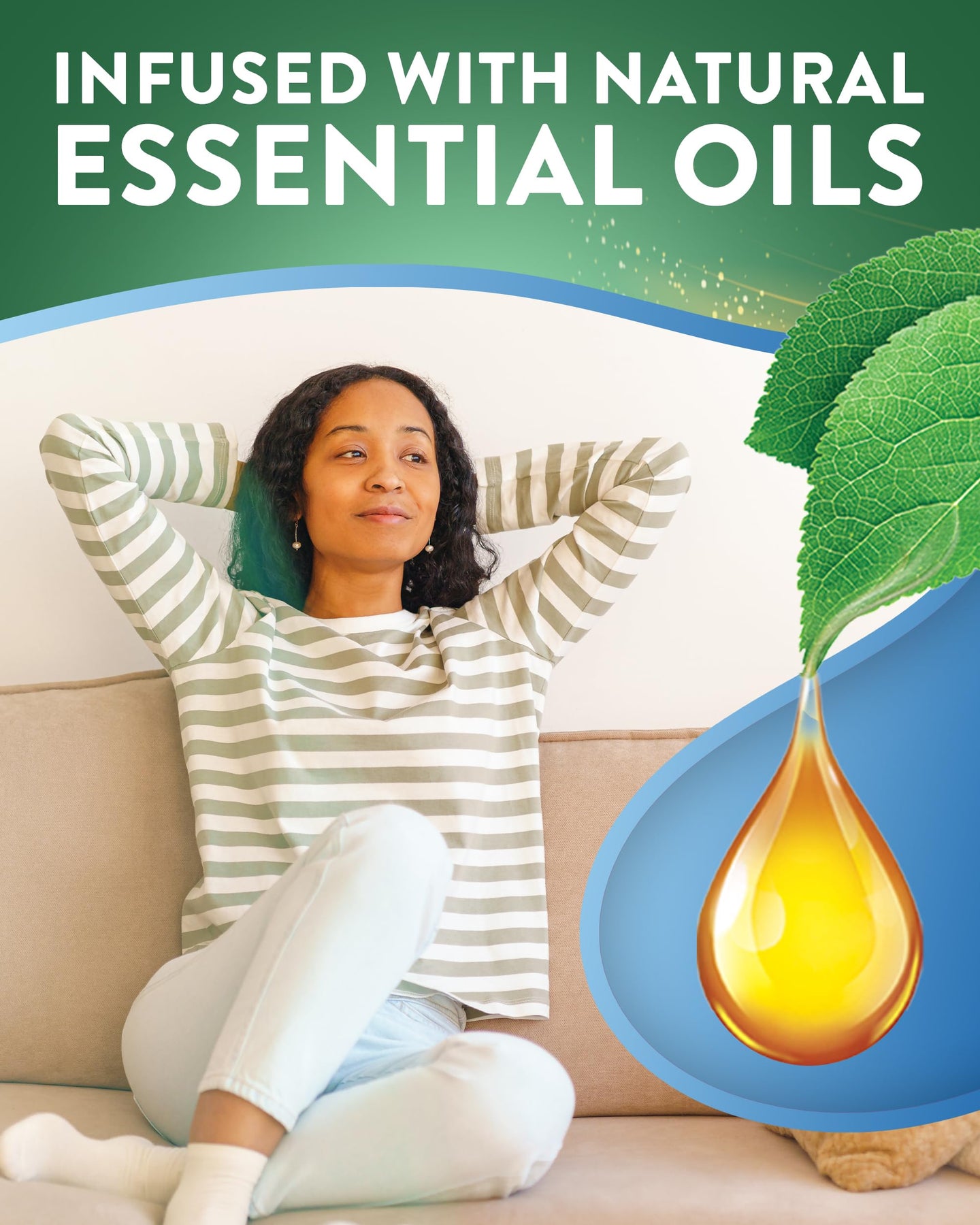 • Infused with natural essential oils including eucalyptus oil, linalool, linalyl acetate, and citral