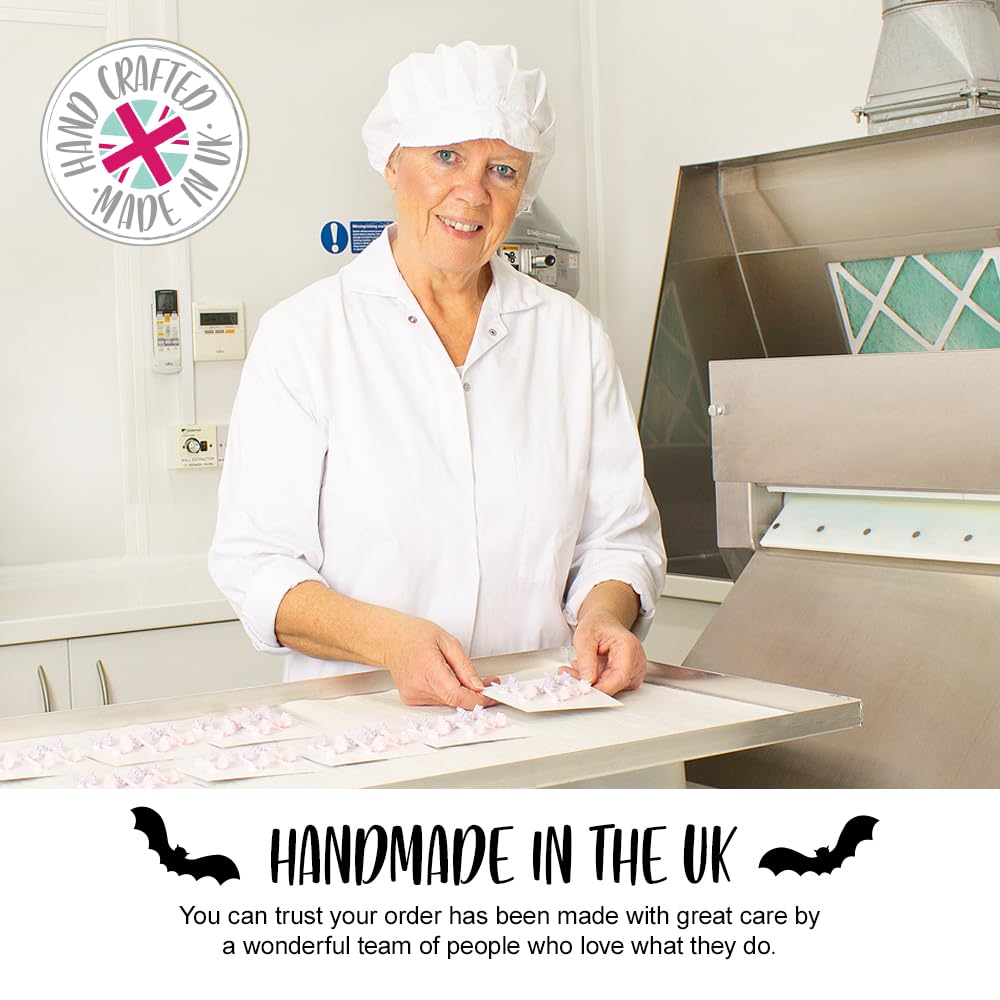 Add a spooky yet delicious touch to your Halloween bakes with these handcrafted edible vampire bat cake toppers from Anniversary House. Made from premium Renshaw fondant sugar, these decorations are perfect for instantly elevating cupcakes, muffins, and celebration cakes for seasonal parties and festive gatherings.