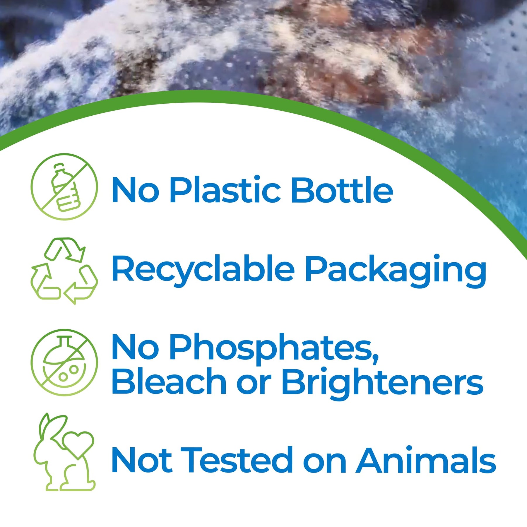 - Biodegradable, liquidless sheets eliminate drips, spills, and plastic bottle waste