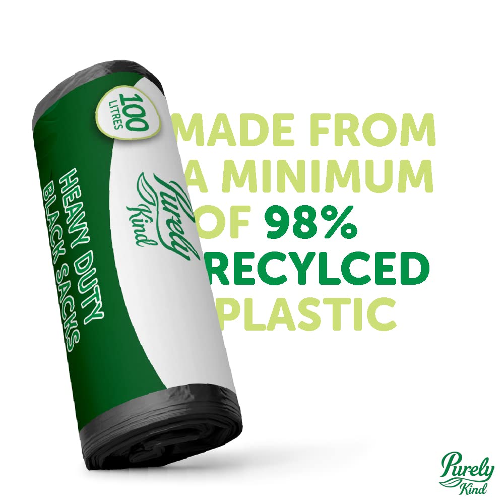 We are committed to making the most durable consumables—and these bags are no exception. Made from at least 98 percent post-consumer scrap plastic, these heavy-duty black sacks help reduce environmental impact by diverting plastic waste from landfills.