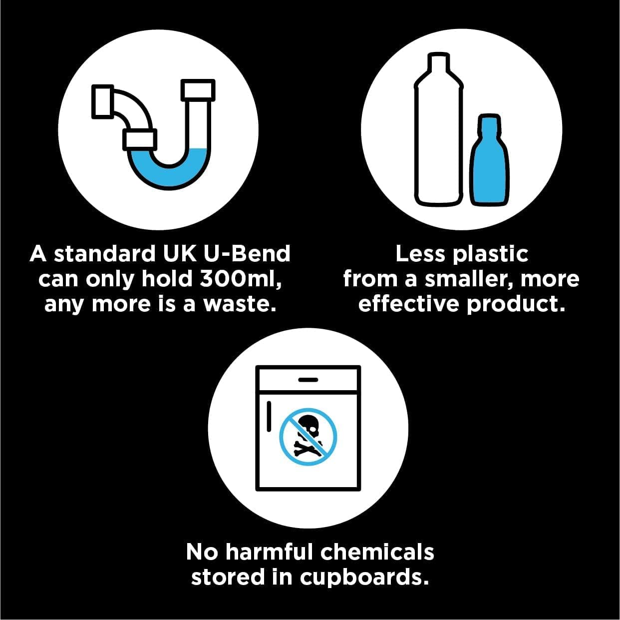• Directions: Remove standing water, pour entire bottle slowly down plughole, leave for at least 15 minutes (overnight for best results), then flush with hot water