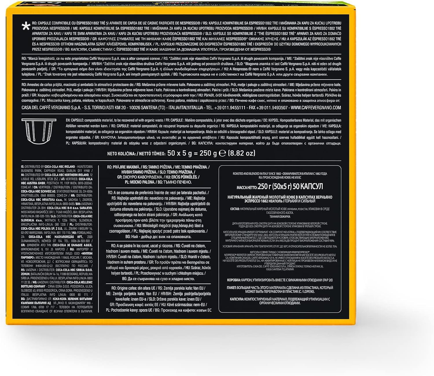 - 50 capsules compatible with Nespresso* and Èspresso1882 TRÈ by Caffè Vergnano machines