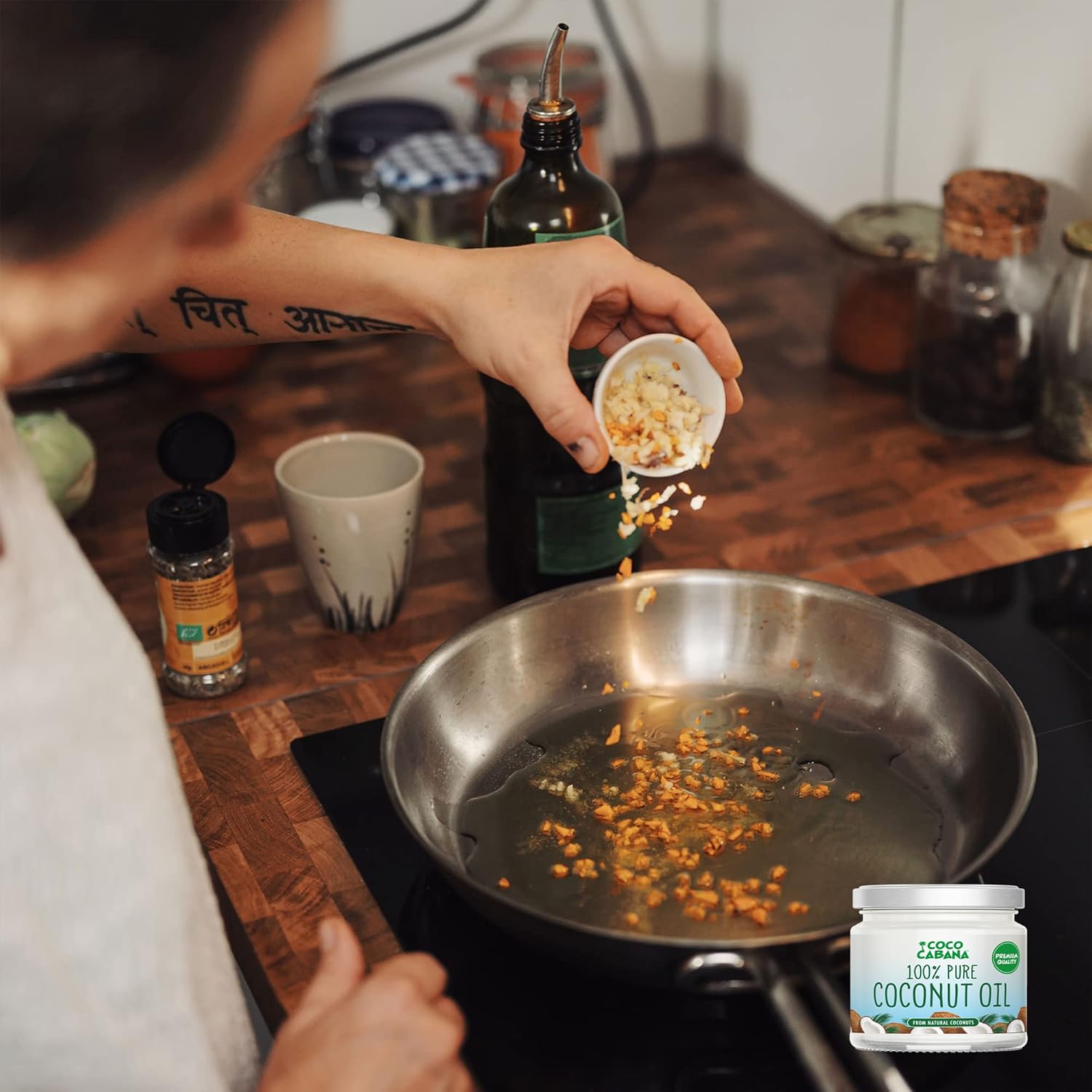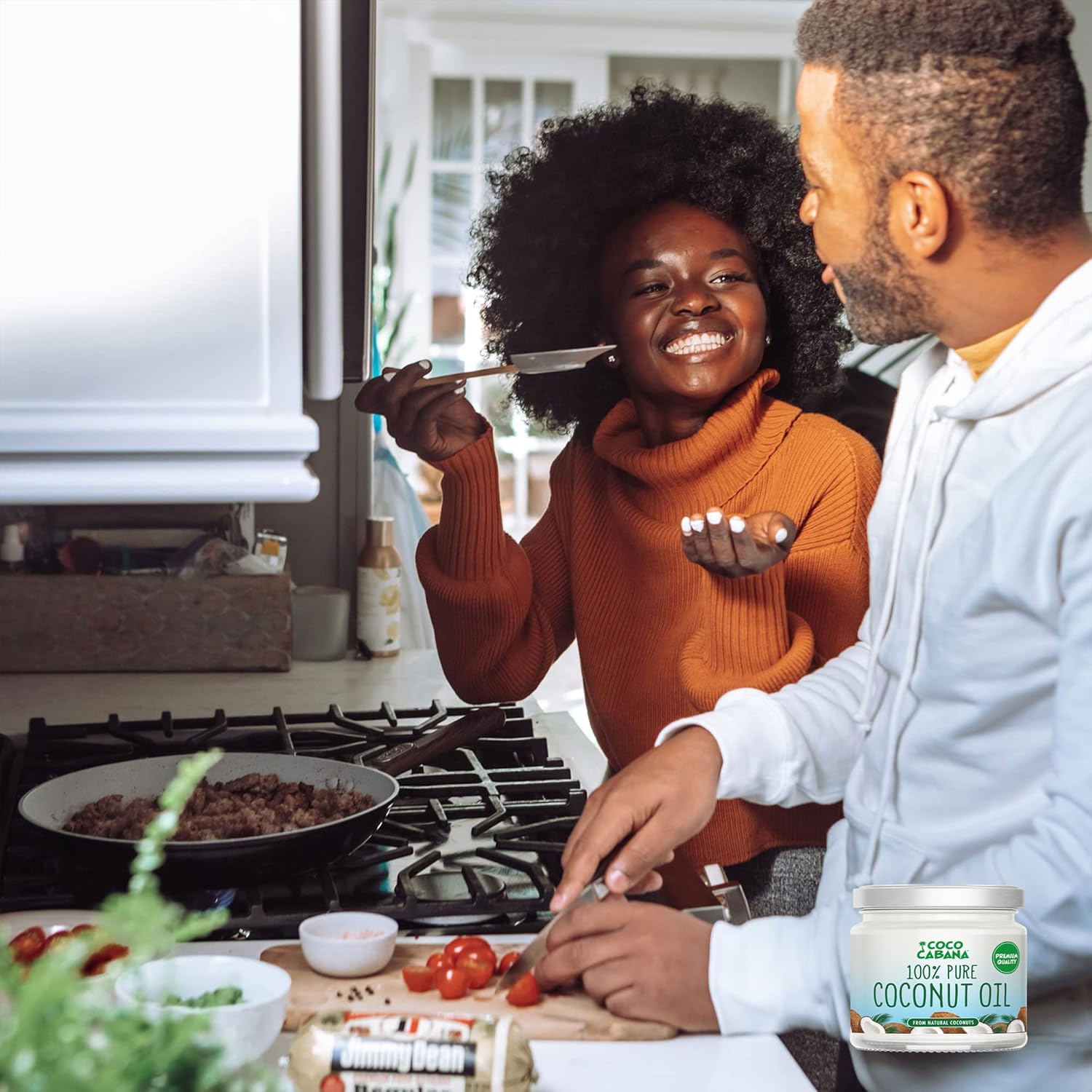 Premium 100% pure coconut oil, refined and fragrance-free, ethically sourced from small family-run farms. This natural beauty and wellness essential deeply hydrates skin and hair while also serving as a healthy alternative in cooking.