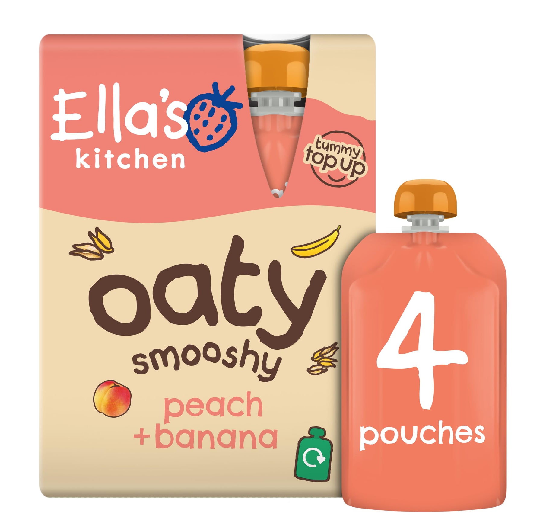 Delight your little one with Ella's Kitchen Peach + Banana Oaty Smooshy, a delicious and nutritious organic oat and fruit blend perfect for toddlers 12 months and up. This ready-to-eat snack combines a 100% organic oat base with pureed peaches, bananas, apples, apricots, and a hint of lemon juice for a naturally sweet, wholesome treat with no added ingredients.