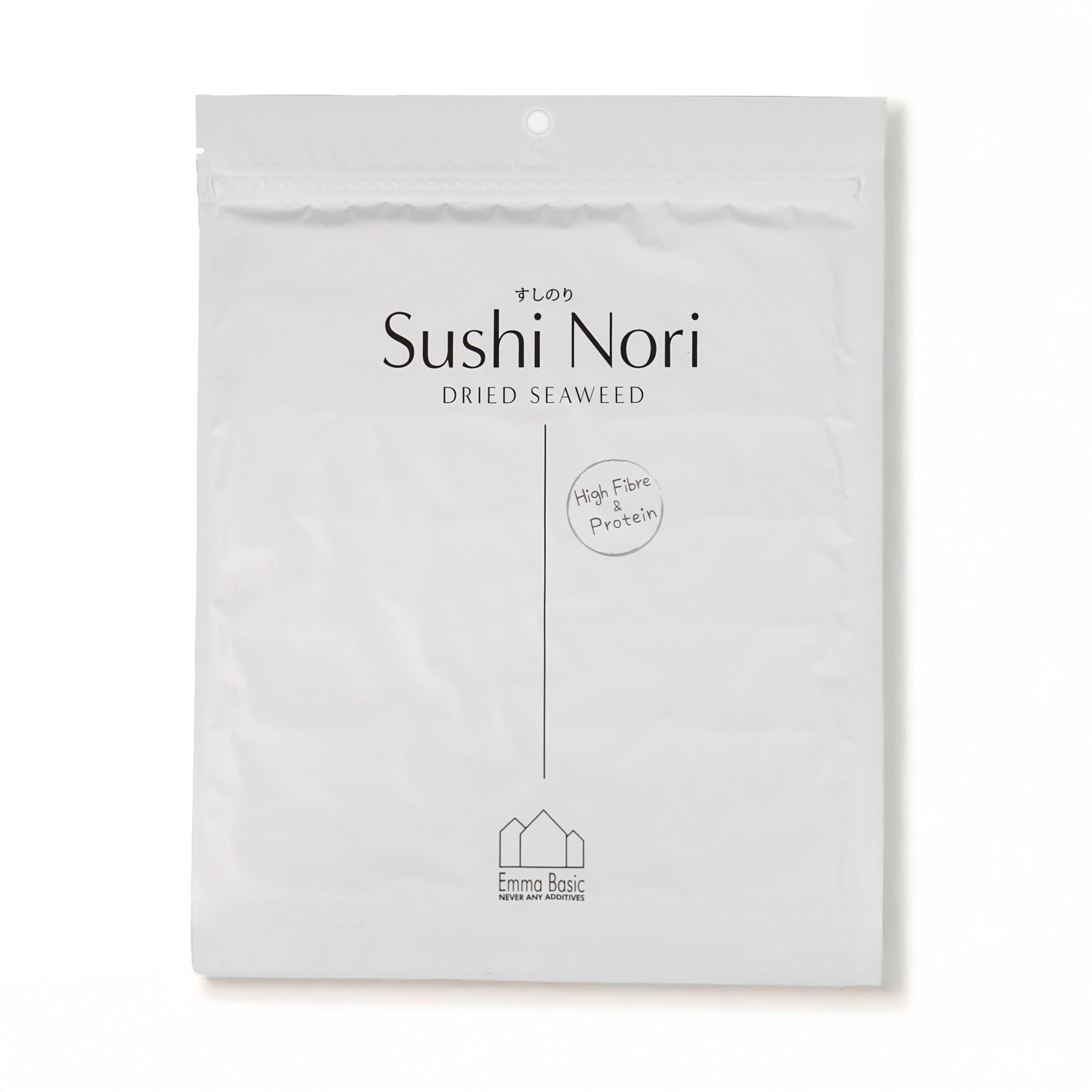 Emma Basic Dried Seaweed Sushi Nori offers 5 full sheets of premium-quality nori harvested at the beginning of the season, from November to April, to ensure a delicate texture and rich umami flavor. Sourced from young and fresh seaweed, this nori is ideal for making sushi, wrapping rice, topping ramen, or enhancing salads with its natural savory taste.