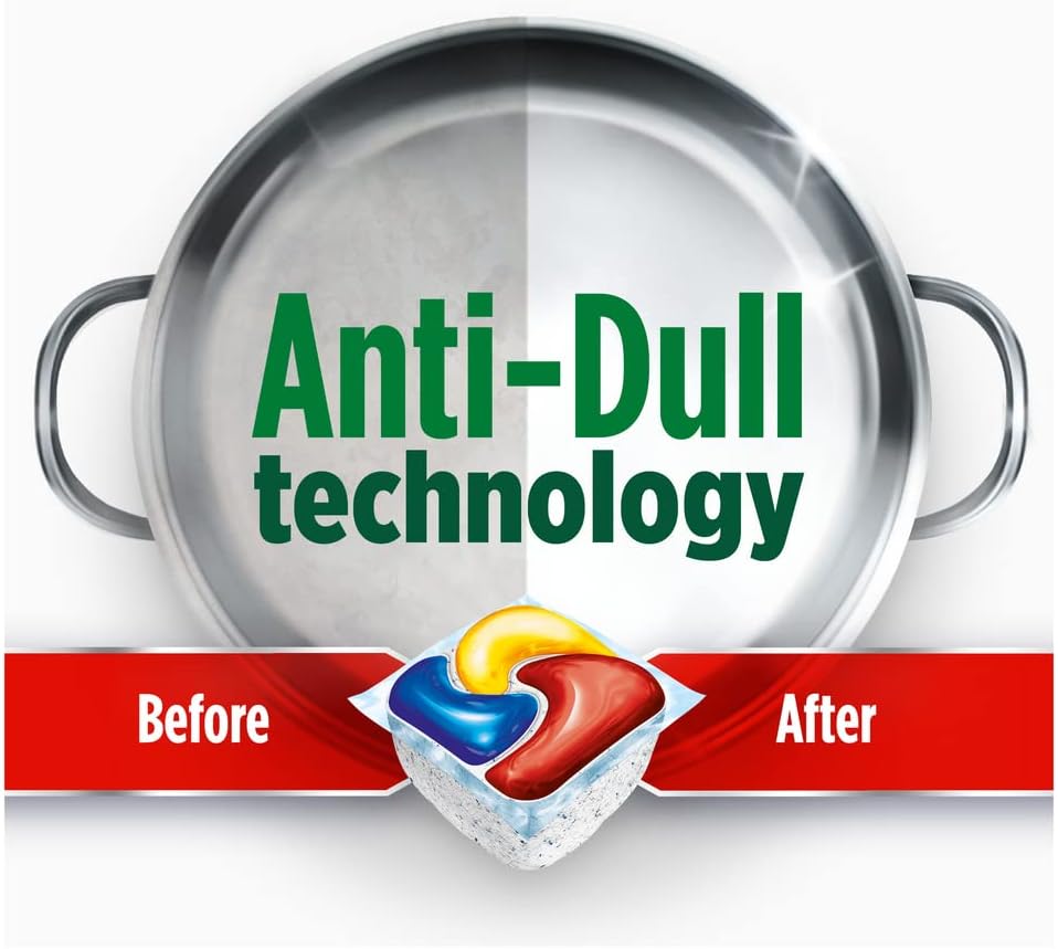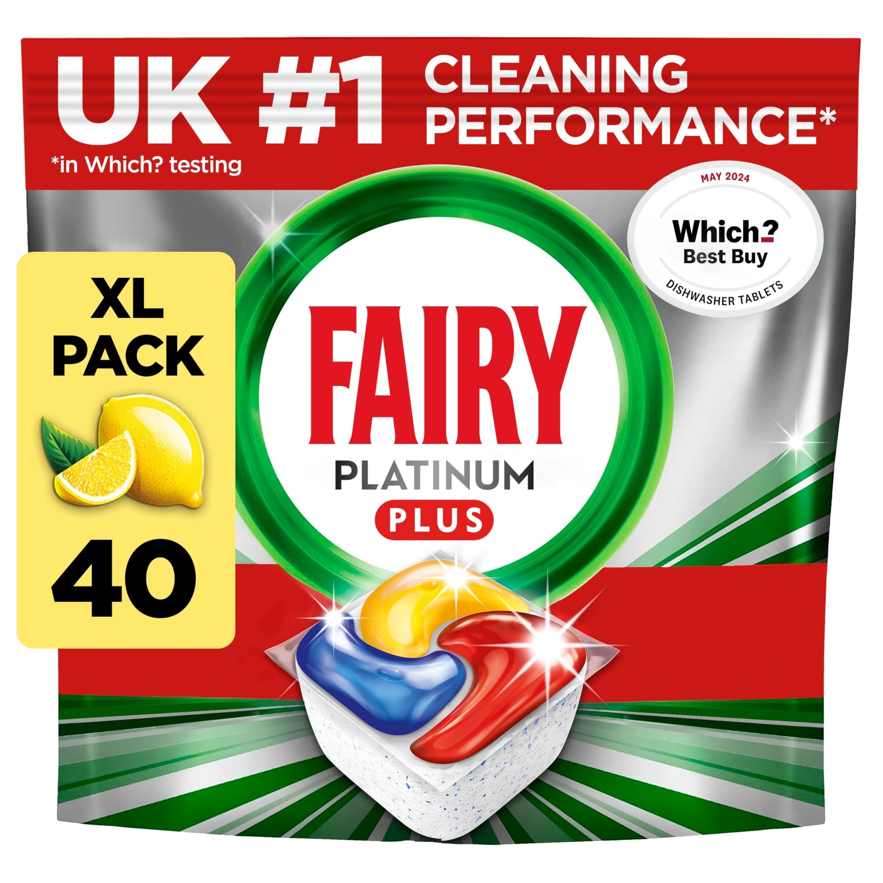 Fairy Platinum Plus All in One dishwasher tablets deliver a clean like new, offering Fairy's best tough food cleaning performance while helping to lift away dullness built up over time to restore the original shine of your dishes.