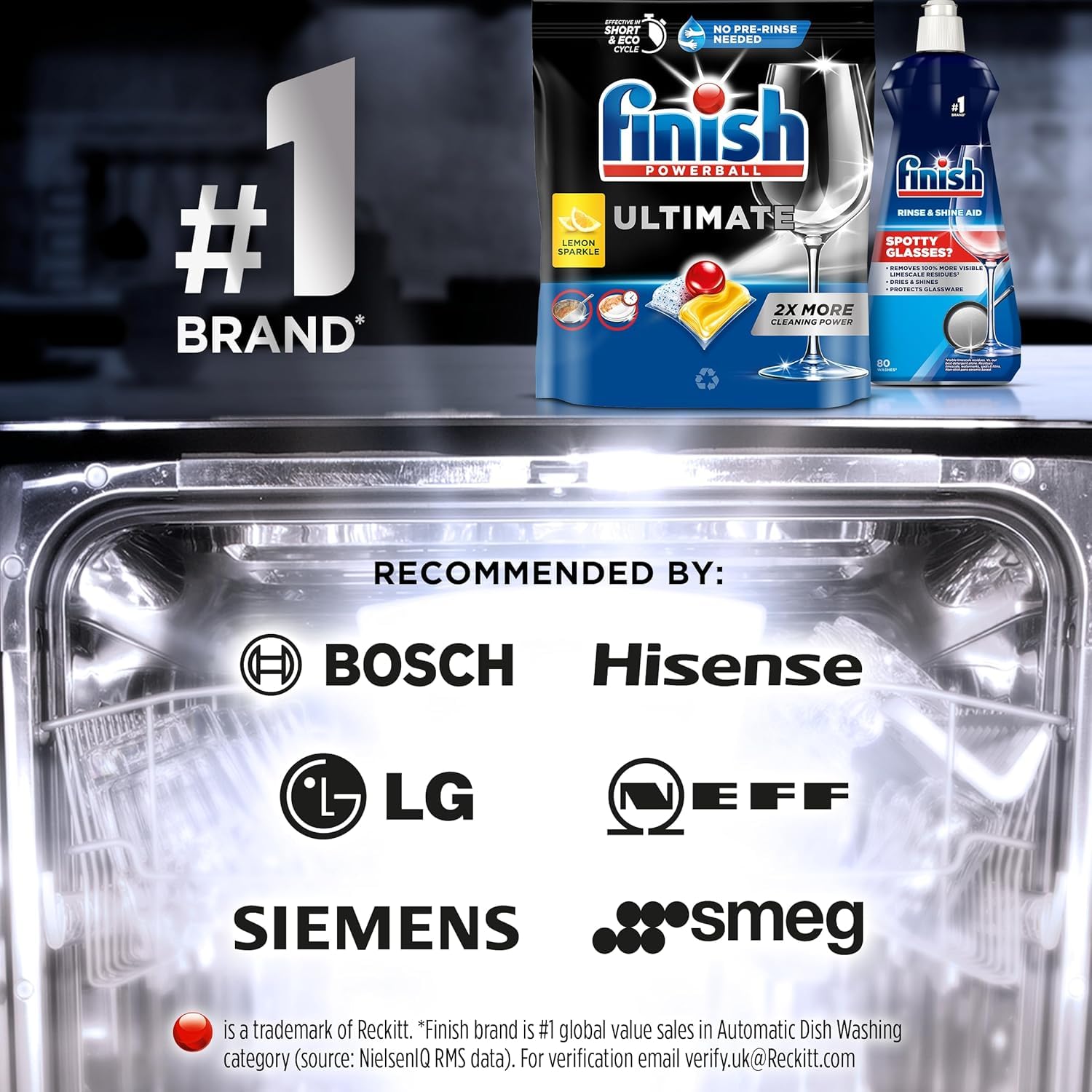 Experience superior cleaning power with Finish Ultimate Dishwasher Tablets in Lemon Sparkle. Designed to tackle even the toughest, 48-hour dried-on food stains, these advanced formula tablets eliminate the need for pre-rinsing, saving you time and effort while delivering spotless, sparkling dishes every time.