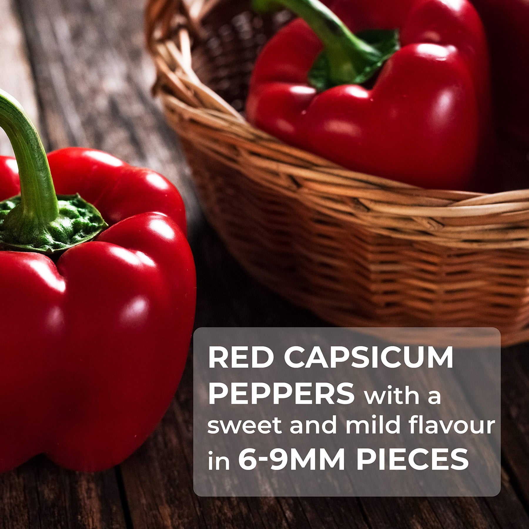 Go Gourmet's minced and dehydrated red pepper flakes offer a convenient, flavorful, and time-saving alternative to fresh red bell peppers. Perfect for busy home cooks, these dried pepper pieces rehydrate quickly and deliver a sweet, mild flavor with a meatier texture than fresh peppers. Ideal for enhancing soups, stews, casseroles, sauces, and any dish calling for diced red bell peppers.