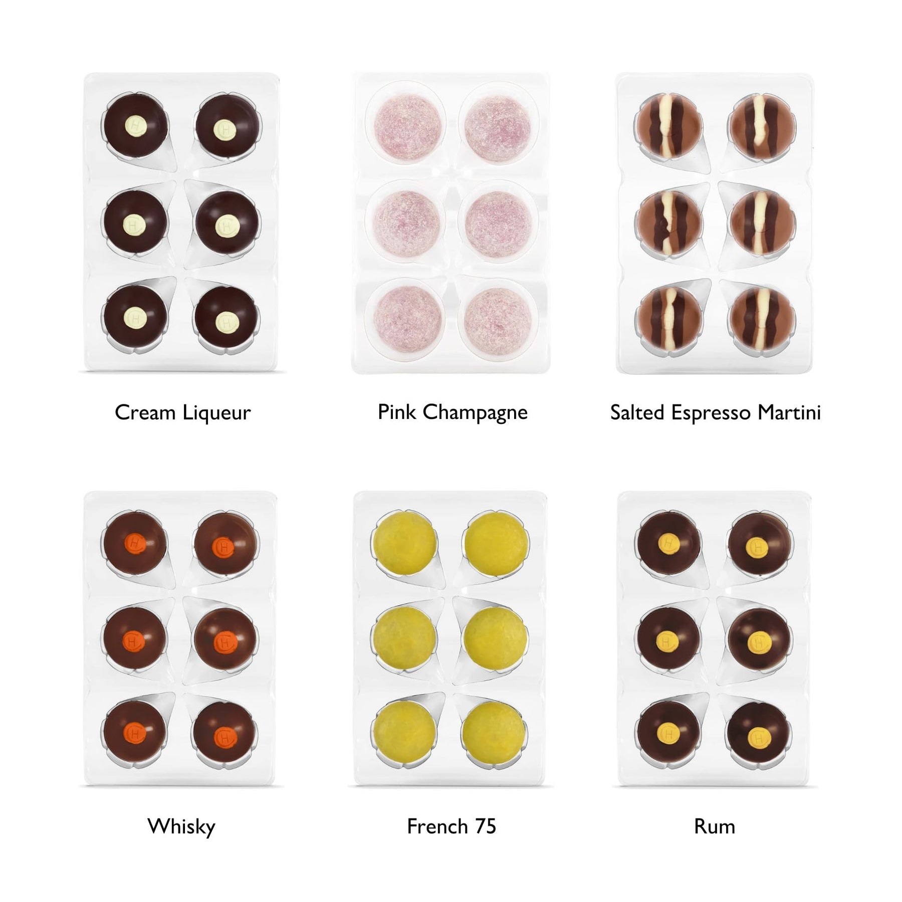 - 36 filled chocolates across eight精选 selectors, each featuring a distinct alcoholic infusion