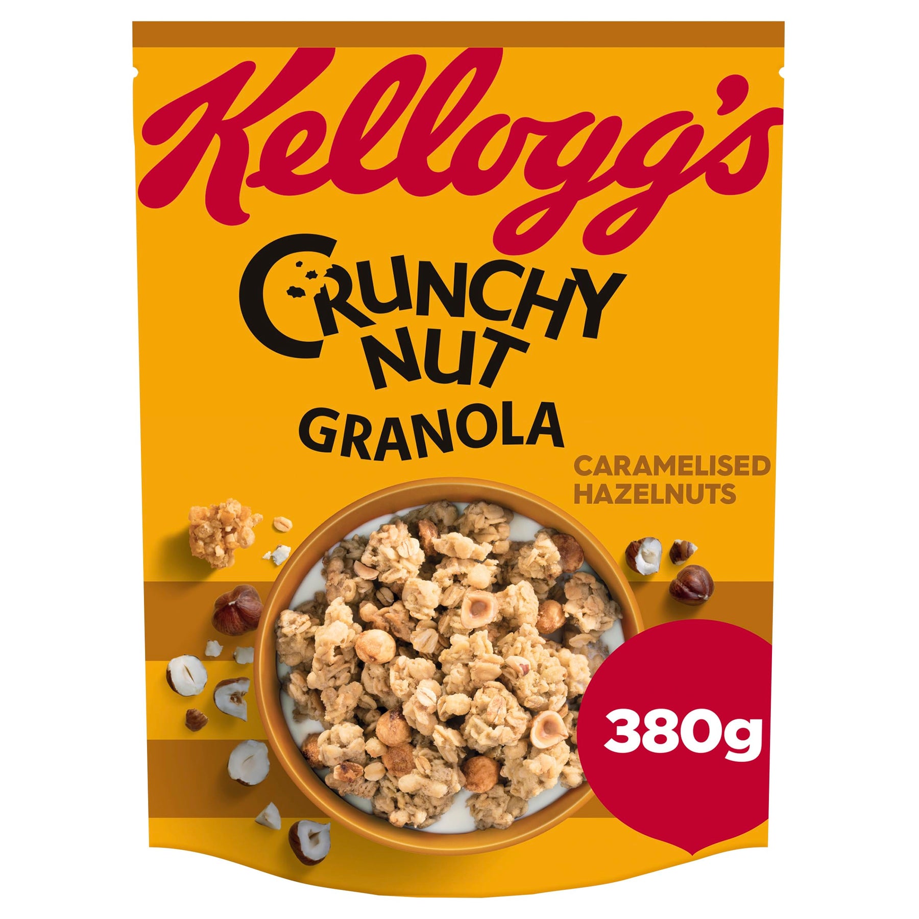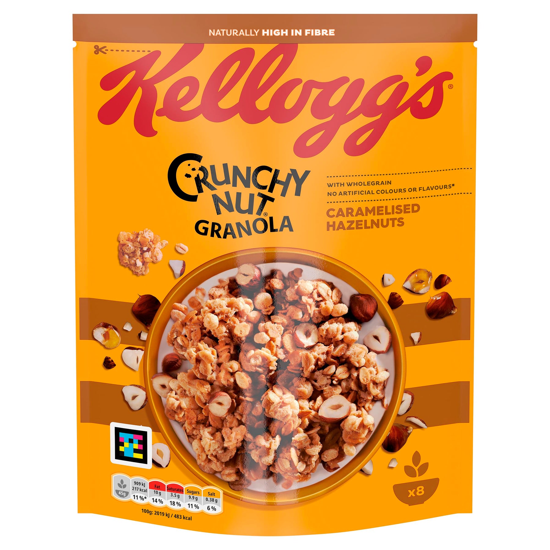 Kellogg's Crunchy Nut Granola offers a delicious blend of crunchy oat clusters and caramelised hazelnuts for a satisfying, nutty, and sweet taste experience. Baked to perfection, this granola is ideal for vegetarians and makes a great addition to breakfast or as a wholesome snack.