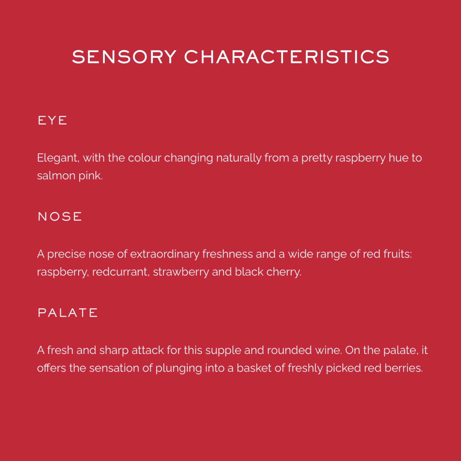 - Palate: Fresh, slightly sharp attack with a supple, rounded texture that evokes a basket of freshly picked red berries