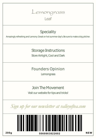 Light, flavourful and packed with citrus notes, a steaming cup of lemongrass tea is the perfect accompaniment to a summer evening. Made from organic lemongrass, this herbal tea has no colourings or flavourings, leading to an all-natural caffeine-free infusion to be enjoyed at any time. Specially prepared by herbal tea experts, this lemongrass infusion is packed with cleansing antioxidants to improve overall wellbeing. Lemongrass tea has long been prized for its aromatic and soothing qualities. This herbal tea has been specially selected by Valley of Tea for its quality and flavour, ensuring you enjoy every single cup.