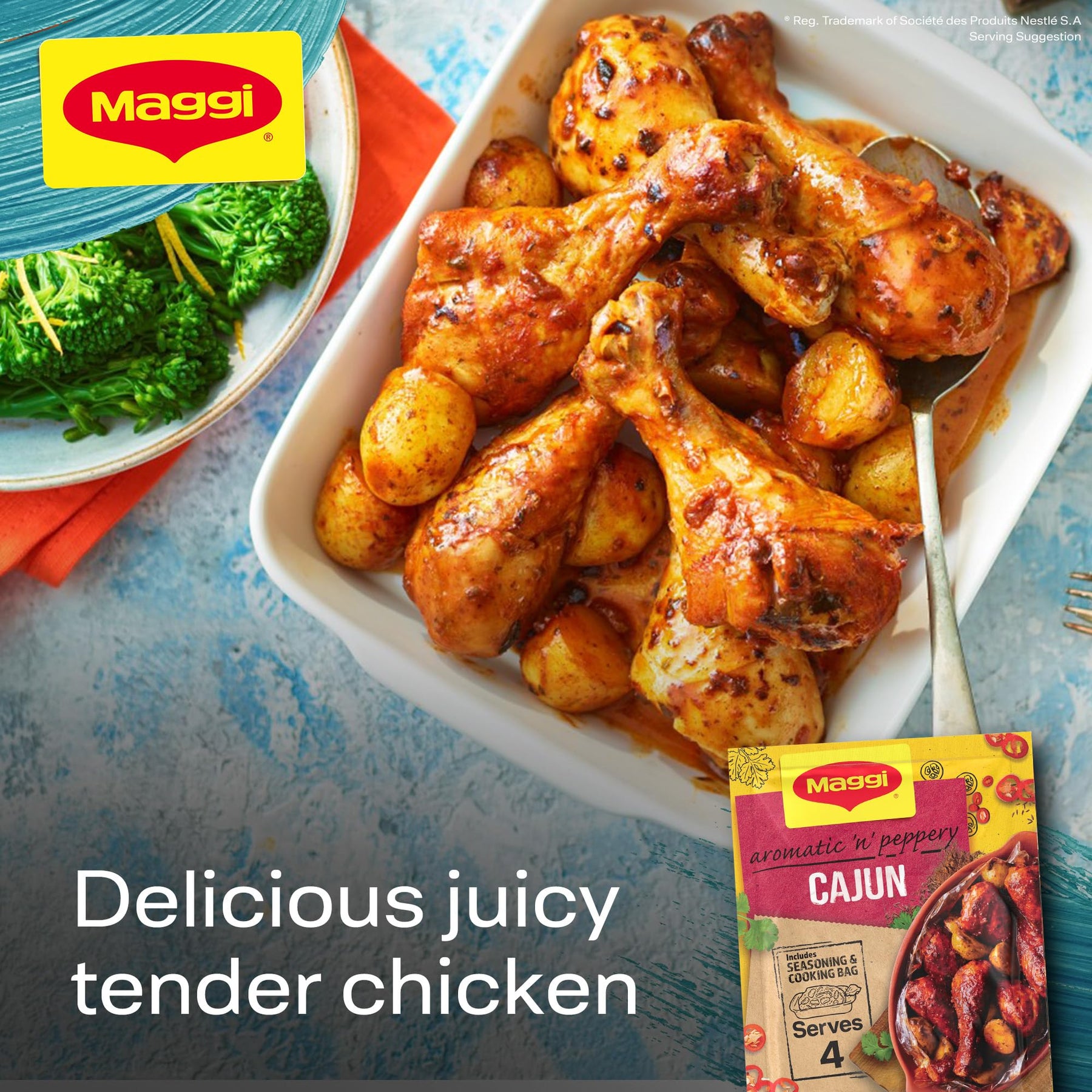 Maggi So Juicy Cajun Chicken Recipe Mix brings the bold, aromatic flavors of Louisiana-style cuisine straight to your kitchen with minimal effort. This convenient 38g sachet contains a ready-to-use blend of authentic Cajun spices and a cooking bag, transforming simple chicken cuts into a juicy, flavor-packed meal in just one hour.