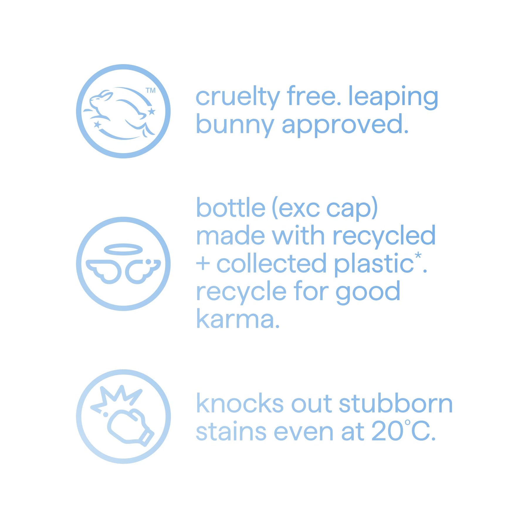 - Effective at low temperatures (20°C), saving energy while removing tough stains
