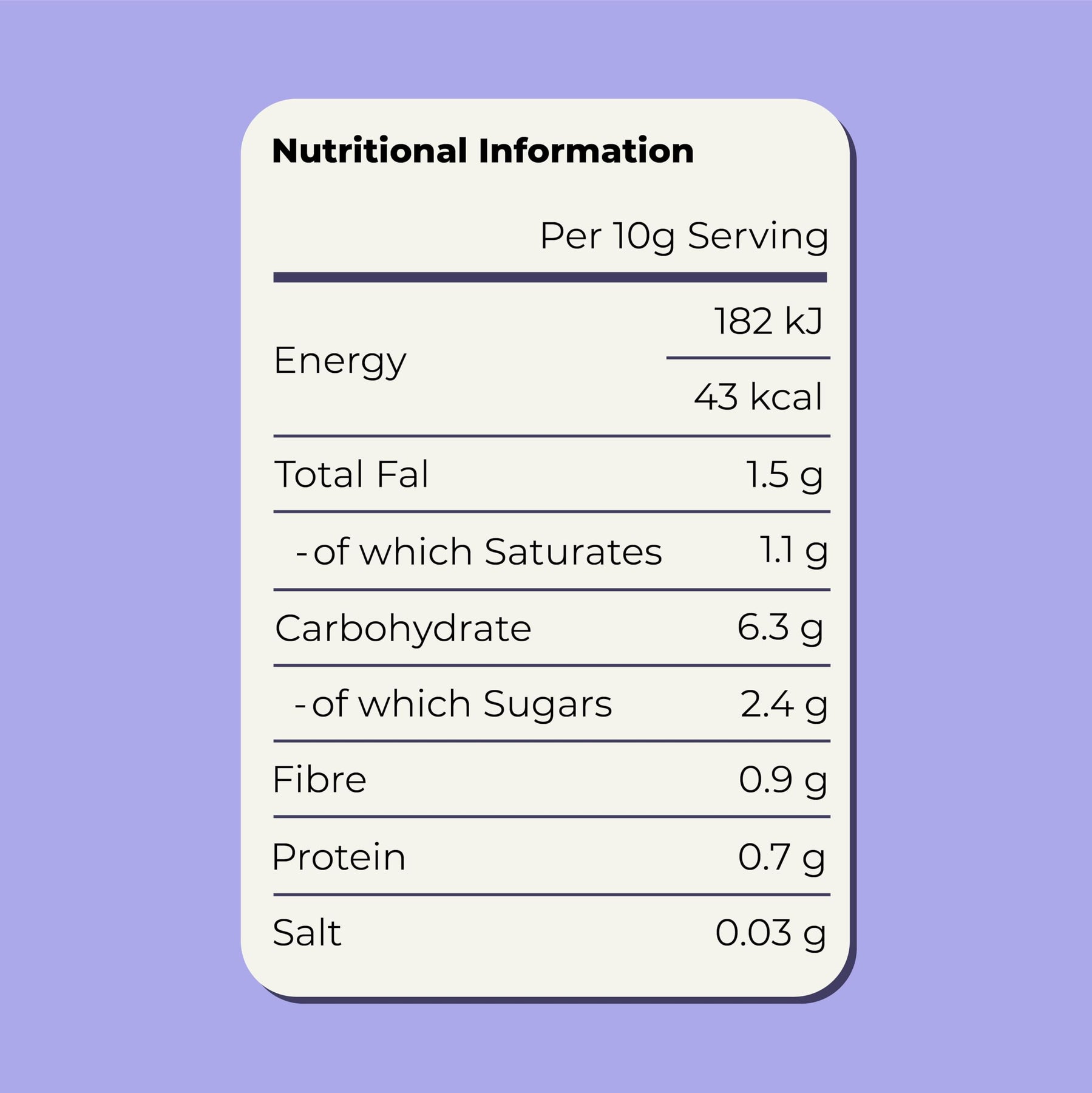 - Ingredients: Oat Extract (81%), Coconut Oil, Full Fat Cocoa Powder, Flavourings, Salt