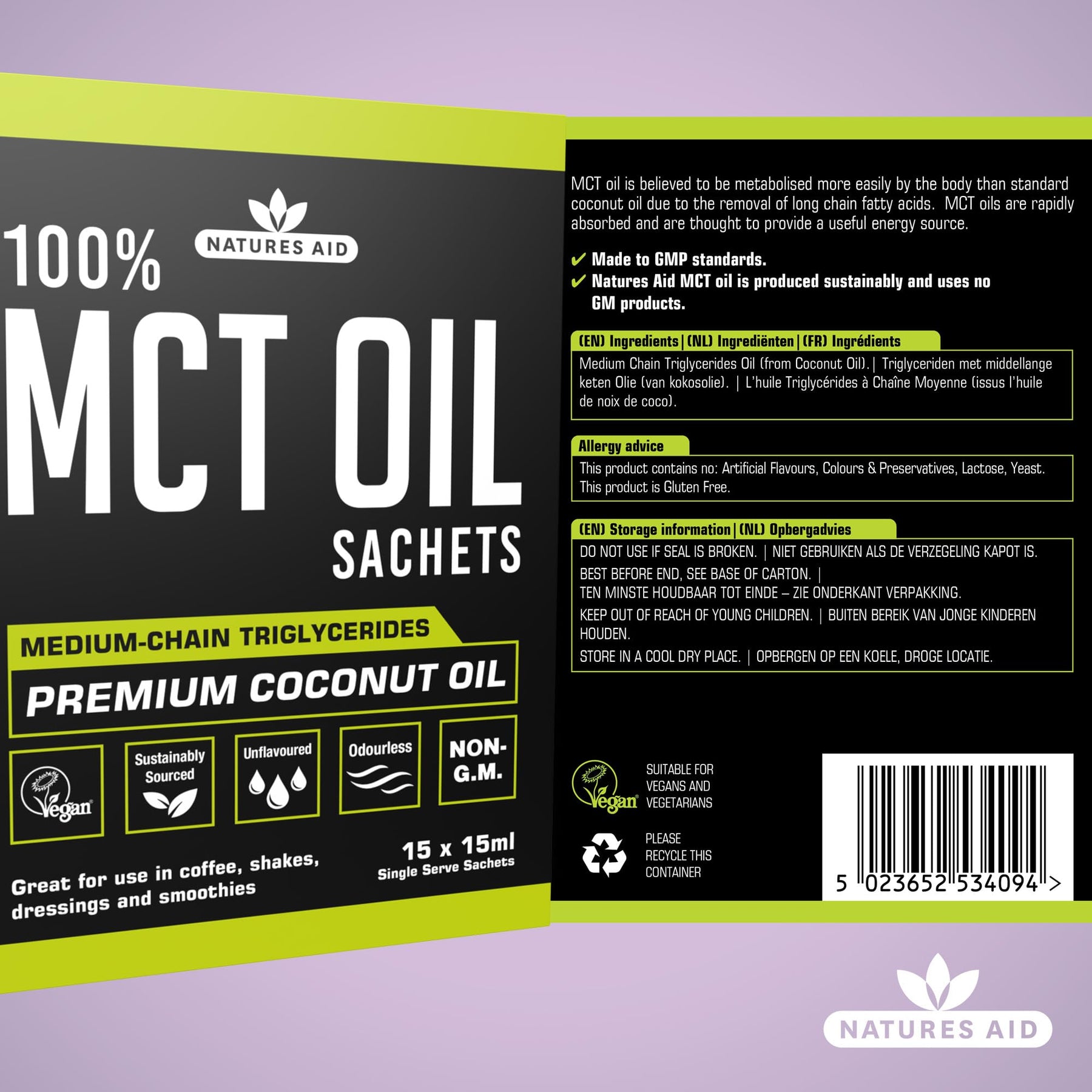 Enhance your daily nutrition with Natures Aid MCT Oil sachets – a convenient, clean, and sustainable way to fuel your body with high-quality medium-chain triglycerides.