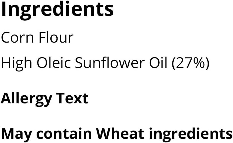 - Made from corn flour with high oleic sunflower oil (27%)