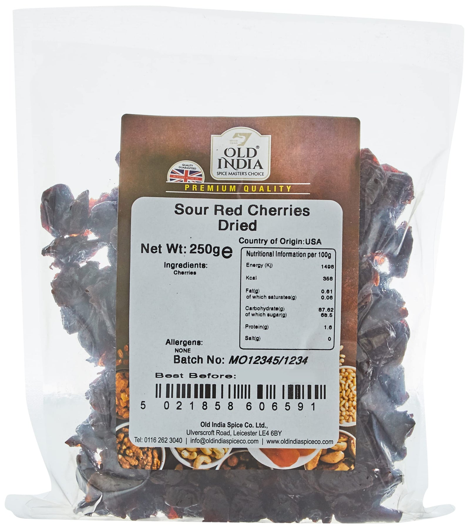 Old India Sour Red Cherries are 100% natural, additive-free, and GMO-free, making them a wholesome addition to your kitchen. Sourced from the origin of the ingredient and packed in a vegetarian atmosphere, these dried cherries come in a heat-sealed bag to preserve freshness and maintain quality for up to two years.