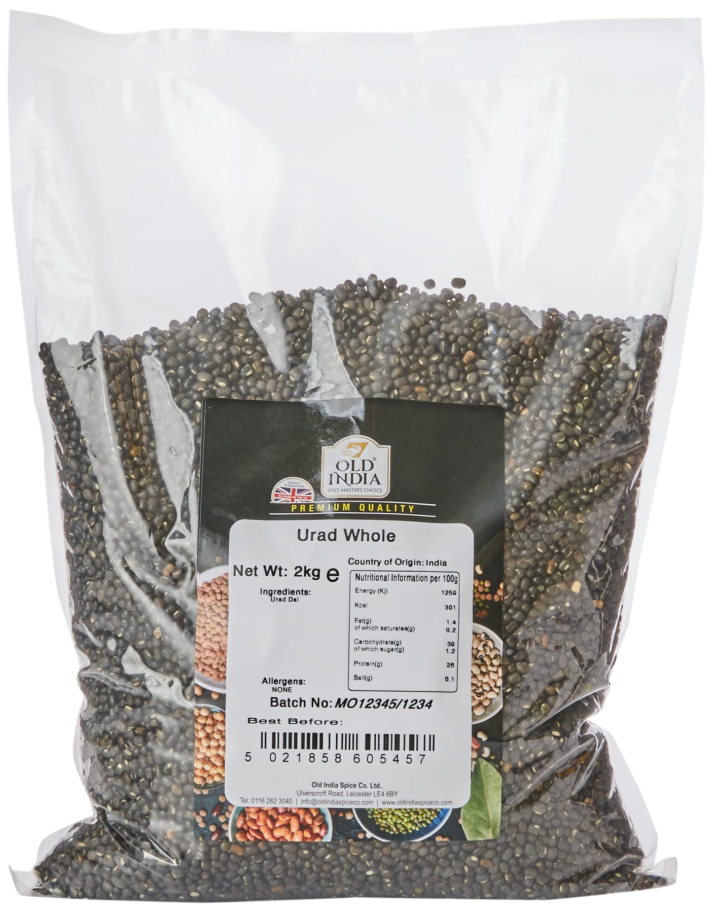 Old India Urad Whole is a premium, 100% natural lentil sourced from the origin of the ingredient and packed in a vegetarian atmosphere to ensure purity. This additive-free and GMO-free product comes in a heat-sealed bag to preserve freshness, with a shelf life of up to two years.