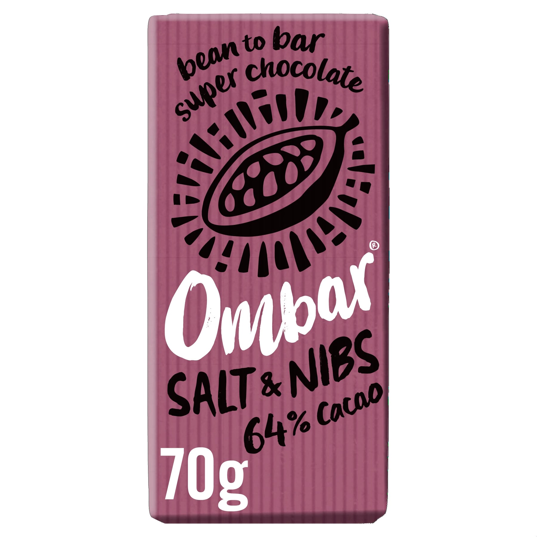 Indulge in Ombar's Salt & Nibs, a rich and creamy 64% vegan chocolate bar crafted with unroasted cacao from Ecuador. This delicious treat combines sustainably sourced salt from the Kalahari Desert with crunchy cacao nibs for a perfect balance of salty, sweet, and crunchy flavors. Made in the UK, this chocolate is designed to preserve the natural goodness of raw cacao while delivering a truly satisfying chocolate experience.